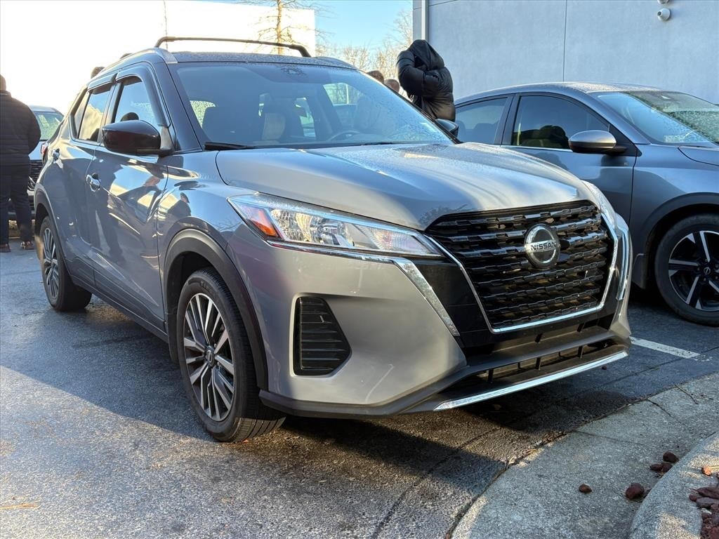 CARFAX One-Owner. * FREE OIL CHANGES!, Back Up Camera, Apple CarPlay/Android Auto, Automatic temperature control, Blind Spot Warning, Crossbars, Exhaust Finisher, Exterior Package, Fully automatic headlights, Illuminated entry, Rear Parking Sensors, Wheels: 17" 5-Hole Alloy. Recent Arrival! Clean CARFAX. 2021 Nissan Kicks SV Boulder Gray Pearl/Super Black