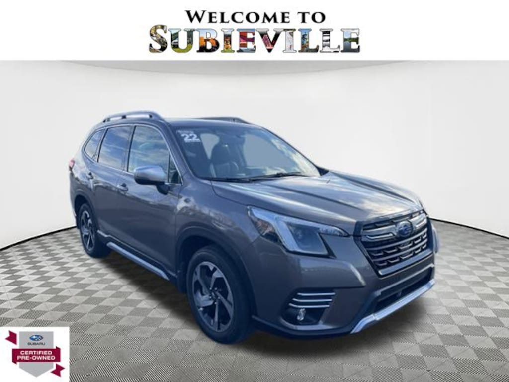 Explore the mountains, trails, and city streets with this Subaru Certified 2022 Forester Touring. One-owner and Clean CARFAX, it blends rugged capability with premium comfort, all backed by Subaruâs legendary Symmetrical AWD and safety tech.