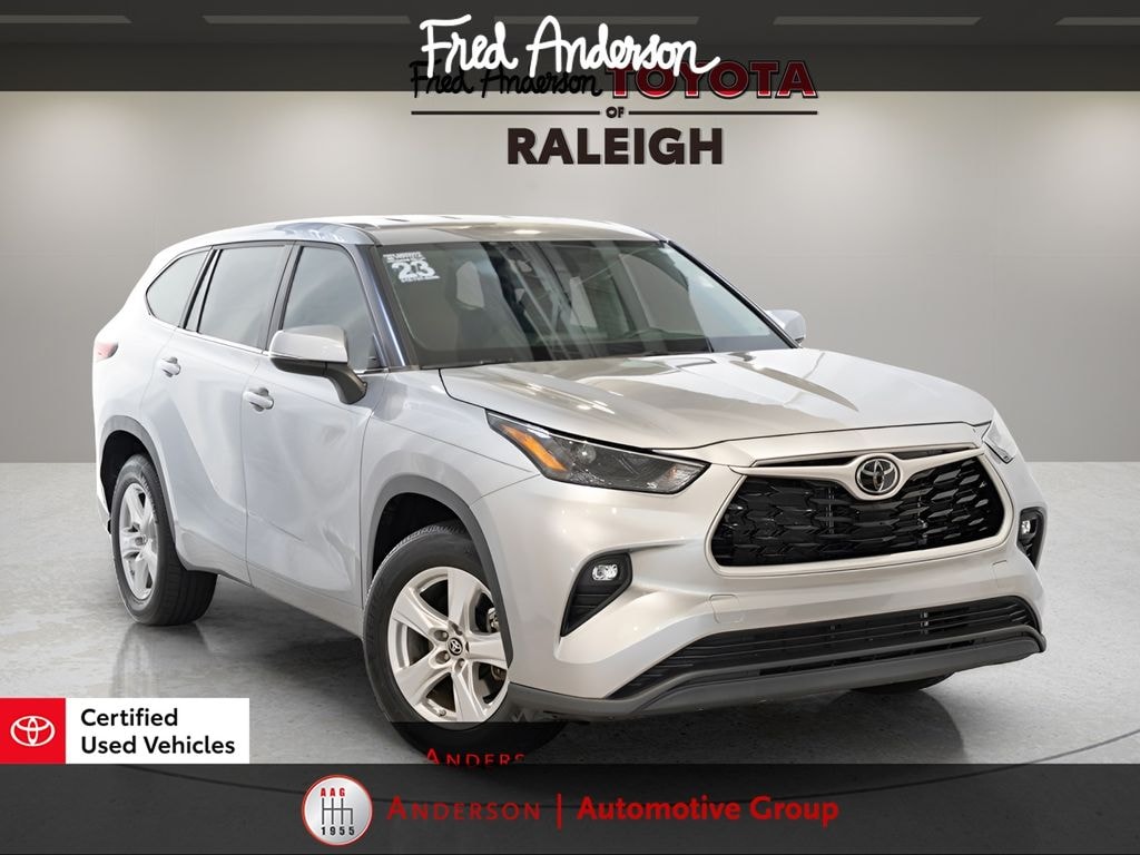 CARFAX One-Owner. Priced below KBB Fair Purchase Price! *Full Family Plan* INCLUDES OIL CHANGES FOR LIFE!, Still Under Factory Powertrain Warranty!!, Only One Prior Owner!!, Alloy wheels / Premium Wheels, Bluetooth, Hands-Free, 3rd Row Seats, Local Trade, Star Safety System with Active Breaking Technologies, Keyless Entry, Keyless Start, Backup Camera, We will buy your car and pay top dollar for it, even if you don't buy ours!!, USB Port, ABS brakes, Active Cruise Control, Alloy wheels, Electronic Stability Control, Front dual zone A/C, Heated door mirrors, Illuminated entry, Low tire pressure warning, Power Liftgate, Remote keyless entry, Traction control. Check out all these great options Toyota Gold Certified Certified, ABS brakes, Active Cruise Control, Alloy wheels, Electronic Stability Control, Front dual zone A/C, Heated door mirrors, Illuminated entry, Low tire pressure warning, Power Liftgate, Remote keyless entry, Traction control, 18" Painted Alloy Wheels, 3.329 Axle Ratio, 3rd row seats: split-bench, 4-Wheel Disc Brakes, 6 Speakers, Air Conditioning, AM/FM radio: SiriusXM, Apple CarPlay/Android Auto, Auto High-beam Headlights, Automatic temperature control, Brake assist, Bumpers: body-color, Delay-off headlights, Driver door bin, Driver vanity mirror, Dual front impact airbags, Dual front side impact airbags, Emergency communication system: Safety Connect (up to 10-year trial subscription), Exterior Parking Camera Rear, Fabric Seat Trim, Four wheel independent suspension, Front anti-roll bar, Front Bucket Seats, Front Center Armrest, Front fog lights, Front reading lights, Fully automatic headlights, Knee airbag, Leather Shift Knob, Leather steering wheel, Occupant sensing airbag, Outside temperature display, Overhead airbag, Overhead console, Panic alarm, Passenger door bin, Passenger vanity mirror, Power door mirrors, Power driver seat, Power steering, Power windows, Radio: 8" Toyota Audio Multimedia, Rear air conditioning, Rear anti-roll bar, Rear reading lights, Rear seat center armrest, Rear window defroster, Rear window wiper, Reclining 3rd row seat, Security system, Speed control, Speed-sensing steering, Split folding rear seat, Spoiler, Steering wheel mounted audio controls, Tachometer, Telescoping steering wheel, Tilt steering wheel, Trip computer, Turn signal indicator mirrors, and Variably intermittent wipersStop by and test drive today. Let us show you how affordable we can make it. Remember, we always give you more for your trade and we will buy your vehicle even if you don't buy one from us. See online @ www.FredAndersonToyota.com or see in person @ Fred Anderson Toyota 9101 Glenwood Ave. Raleigh NC, 27617. 2023 Toyota Certified. Highlander LE FWD Celestial Silver Metallic 8-Speed Automatic