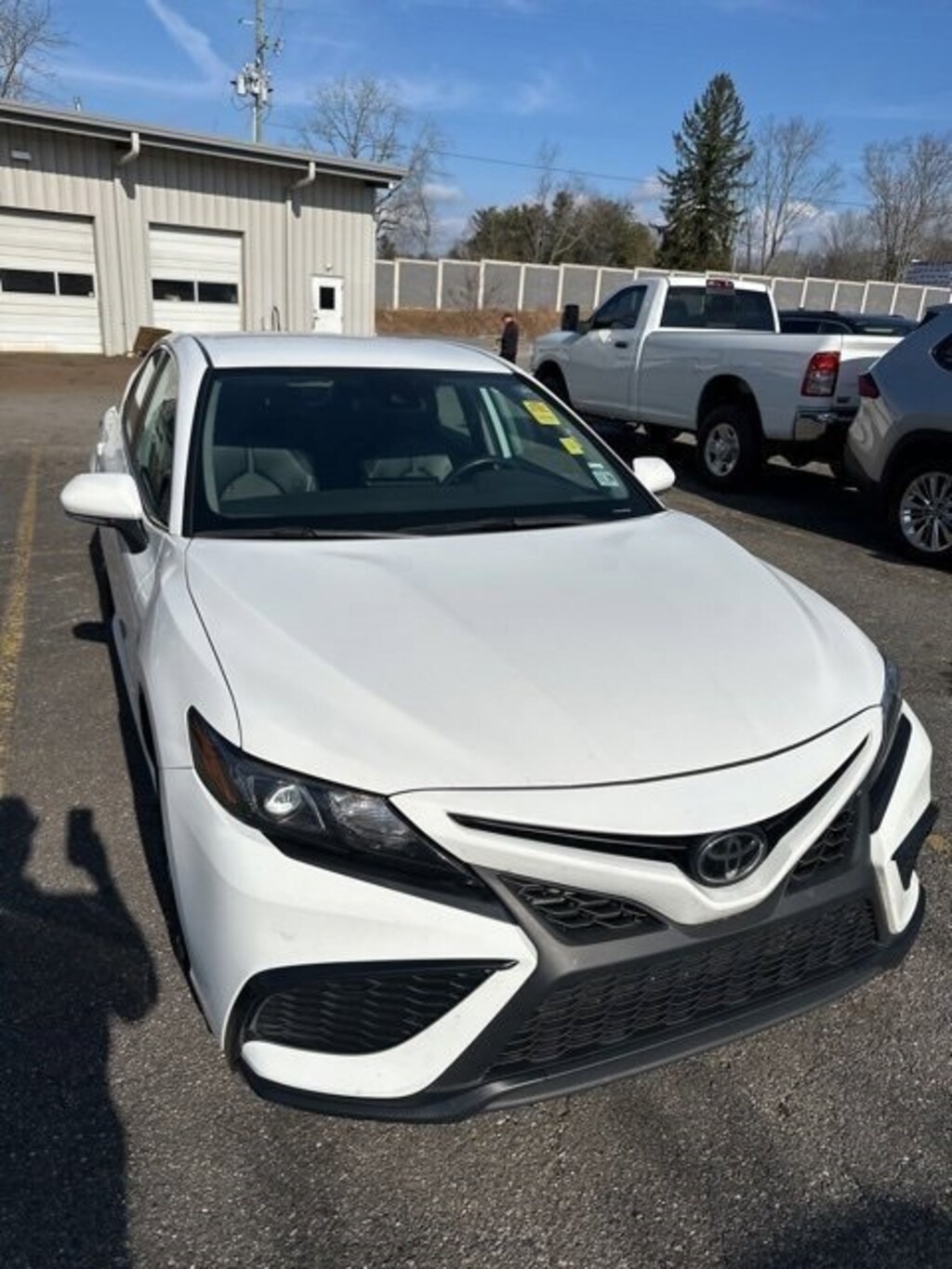 Recent Arrival! CARFAX One-Owner. 2024 Toyota Camry SE White ABS brakes, Active Cruise Control, Alloy wheels, Electronic Stability Control, Front dual zone A/C, Heated door mirrors, Illuminated entry, Low tire pressure warning, Remote keyless entry, Traction control.