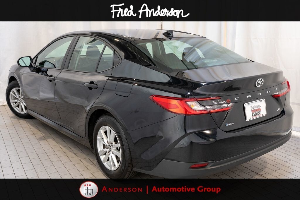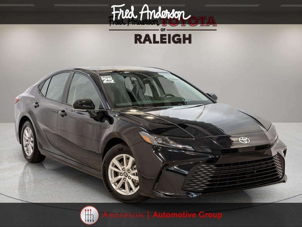 CARFAX One-Owner. Clean CARFAX. Priced below KBB Fair Purchase Price! *Full Family Plan* INCLUDES OIL CHANGES FOR LIFE!, Still Under Factory Powertrain Warranty!!, Still Under Factory Warranty!!, Only One Owner and Accident Free Carfax!!, Alloy wheels / Premium Wheels, Bluetooth, Hands-Free, Star Safety System with Active Breaking Technologies, Keyless Entry, Keyless Start, Backup Camera, We will buy your car and pay top dollar for it, even if you don't buy ours!!, USB Port, 2.5L 4-Cylinder 16V DOHC, Black w/Fabric Seat Trim, ABS brakes, Active Cruise Control, Alloy wheels, Electronic Stability Control, Front dual zone A/C, Heated door mirrors, Illuminated entry, Low tire pressure warning, Remote keyless entry, Traction control. Check out all these great options 2.5L 4-Cylinder 16V DOHC, Black w/Fabric Seat Trim, ABS brakes, Active Cruise Control, Alloy wheels, Electronic Stability Control, Front dual zone A/C, Heated door mirrors, Illuminated entry, Low tire pressure warning, Remote keyless entry, Traction control, 4-Wheel Disc Brakes, 6 Speakers, Air Conditioning, AM/FM radio: SiriusXM, Apple CarPlay/Android Auto, Auto High-beam Headlights, Automatic temperature control, Brake assist, Bumpers: body-color, Delay-off headlights, Driver door bin, Driver vanity mirror, Dual front impact airbags, Dual front side impact airbags, Emergency communication system: Safety Connect (up to 10-year trial subscription), Exterior Parking Camera Rear, Fabric Seat Trim, Four wheel independent suspension, Front anti-roll bar, Front Bucket Seats, Front Center Armrest, Front reading lights, Fully automatic headlights, Knee airbag, Occupant sensing airbag, Outside temperature display, Overhead airbag, Overhead console, Panic alarm, Passenger door bin, Passenger vanity mirror, Power door mirrors, Power steering, Power windows, Radio data system, Radio: Toyota Audio Multimedia w/8" Touchscreen, Rear anti-roll bar, Rear seat center armrest, Rear side impact airbag, Rear window defroster, Security system, Speed control, Speed-sensing steering, Split folding rear seat, Steering wheel mounted audio controls, Telescoping steering wheel, Tilt steering wheel, Trip computer, Turn signal indicator mirrors, Variably intermittent wipers, and Wheels: 16" Silver-Finished AlloyStop by and test drive today. Let us show you how affordable we can make it. Remember, we always give you more for your trade and we will buy your vehicle even if you don't buy one from us. See online @ www.FredAndersonToyota.com or see in person @ Fred Anderson Toyota 9101 Glenwood Ave. Raleigh NC, 27617. Recent Arrival! 2025 Toyota Camry LE FWD Midnight Black Metallic eCVT