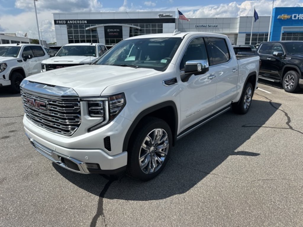 Fred Anderson Chevrolet Buick GMC is pleased to offer this attractive 2025 GMC Sierra 1500 Denali in White Frost Tricoat and Jet Black Interior. Check out all these great Denali Reserve Super Package (GMC MultiPro Power Steps, Power Sunroof, Super Cruise, Super Cruise Wrapped Steering Wheel, Wheel Locks (Set of 4) (LPO), and Wheels: 22" x 9" Painted Aluminum), Preferred Equipment Group 5SA (120-Volt Bed Mounted Power Outlet, 120-Volt Interior Power Outlet, 170 Amp Alternator, 2 Charge/Data USB Ports Inside Center Console, 2 Type-C Charge-Only Rear USB Ports, 2 USB Ports, Auto-Locking Rear Differential, Auxiliary External Transmission Oil Cooler, Bed View Camera, Chrome Header w/Signature Denali Chrome Grille, Chrome Recovery Hooks, Chrome Wheel To Wheel Assist Steps, Color-Keyed Carpeting Floor Covering, Deep-Tinted Glass, Electric Rear-Window Defogger, Floor-Mounted Center Console, Front Rain-Sensing Wipers, HD Surround Vision, Heated 2nd Row Outboard Seats, Heated Driver & Front Outboard Passenger Seating, Heavy-Duty Air Filter, Hill Descent Control, Hitch View, In-Vehicle Trailering System App, Integrated Trailer Brake Controller, Keyless Open & Start, LED Cargo Area Lighting, OnStar Services Capable, Perimeter Lighting, Power Door Locks, Power Front Passenger Windows w/Express Up/Down, Power Front Windows w/Driver Express Up/Down, Power Rake & Telescoping Steering Column, Power Rear Windows w/Express Down, Power Sliding Rear Window w/Rear Defogger, Premium Bose 7-Speaker Sound System, Push Button Start, Rear Cross Traffic Braking, Rear Pedestrian Detection, Rear Wheelhouse Liners, Remote Vehicle Starter System, SiriusXM w/360L Trial Subscription, Spray-On Pickup Bedliner w/GMC Logo, Steering Wheel Audio Controls, Theft Deterrent System (Unauthorized Entry), Trailer Camera Provisions, Trailer Side Blind Zone Alert, Ultrasonic Front & Rear Park Assist, Universal Home Remote, Ventilated Driver & Front Passenger Seats, Wi-Fi Hotspot Capable, and Wireless Charging), Technology Package (Multicolor 15" Diagonal Head-Up Display and Rear Camera Mirror), Trailering Package (Hitch Guidance), 12-Way Power Driver Seat Adjuster w/Lumbar, 12-Way Power Passenger Seat Adjuster w/Lumbar, 3 Years of OnStar & Connected Services Plan (DISC), 3.23 Rear Axle Ratio, 4-Wheel Disc Brakes, 7 Speakers, ABS brakes, Adaptive suspension, Air Conditioning, Alloy wheels, AM/FM radio: SiriusXM with 360L, Apple CarPlay/Android Auto, Auto High-beam Headlights, Auto-dimming door mirrors, Auto-dimming Rear-View mirror, Automatic temperature control, Brake assist, Buckle to Drive, Bumpers: body-color, Compass, Console-Mounted Safe (LPO), Delay-off headlights, Denali Premium Suspension w/Adaptive Ride Control, Driver door bin, Driver Memory, Driver vanity mirror, Dual Active Exhaust, Dual front impact airbags, Dual front side impact airbags, Electronic Stability Control, Emergency communication system: OnStar, Enhanced Automatic Emergency Braking, Following Distance Indicator, Forge Perforated Leather Seat Trim, Forward Collision Alert, Front anti-roll bar, Front Bucket Seats, Front Center Armrest, Front dual zone A/C, Front fog lights, Front License Plate Kit, Front Pedestrian Braking, Front reading lights, Front wheel independent suspension, Fully automatic headlights, Garage door transmitter, Genuine wood console insert, Genuine wood dashboard insert, Genuine wood door panel insert, Heated door mirrors, Heated front seats, Heated rear seats, Heated steering wheel, Illuminated entry, IntelliBeam Automatic High Beam On/Off, Lane Keep Assist w/Lane Departure Warning, Low tire pressure warning, Memory seat, Navigation System, Occupant sensing airbag, Outside temperature display, Overhead airbag, Overhead console, Panic alarm, Passenger door bin, Passenger vanity mirror, Power door mirrors, Power driver seat, Power passenger seat, Power steering, Pow Price includes: $2750 - Buick & GMC Consumer Cash Program. Exp. 11/03/2025 $500 - GM Bonus Cash. Exp. 11/03/2025