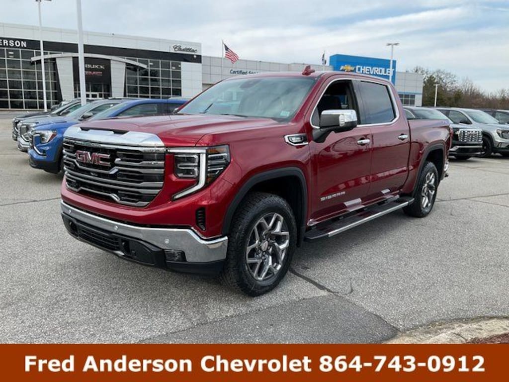 Fred Anderson Chevrolet Buick GMC is pleased to offer this good-looking 2026 GMC Sierra 1500 SLT in Volcanic Red Tintcoat and Jet Black Interior. Check out all these great High Capacity Suspension Package, Preferred Equipment Group 4SA (10-Way Power Driver Seat Adjuster with Lumbar, 10-Way Power Passenger Seat Adjuster with Lumbar, 120-Volt Bed Mounted Power Outlet, 120-Volt Interior Power Outlet, 170 Amp Alternator, 2 Charge/Data USB Ports, 2 Type-C Charge-Only Rear USB Ports, 6-Speaker Audio System Feature, Auto-Locking Rear Differential, Auxiliary External Transmission Oil Cooler, Chrome Header and Chrome Grille Insert Bars, Color-Keyed Carpeting Floor Covering, Deep-Tinted Glass, Driver Memory, Electric Rear-Window Defogger, Front 40/20/40 Split-Bench Seat, Front Frame-Mounted Black Recovery Hooks, Front Rain-Sensing Wipers, HD Rear Vision Camera, Heated Driver and Front Outboard Passenger Seating, Integrated Trailer Brake Controller, Keyless Open and Start, LED Cargo Area Lighting, Manual Tilt-Wheel and Telescoping Steering Column, OnStar Services Capable, Perimeter Lighting, Power Door Locks, Power Front Passenger Windows with Express Up/Down, Power Front Windows with Driver Express Up/Down, Power Rear Windows with Express Down, Push Button Start, Rear Wheelhouse Liners, Remote Vehicle Starter System, SiriusXM with 360L Trial Subscription, Steering Wheel Audio Controls, Theft Deterrent System (unauthorized Entry), Wheels: 18" x 8.5" 6-Spoke Machined Aluminum, and Wi-Fi Hotspot Capable), ProGrade Trailering System (Hitch View and in-Vehicle Trailering System App), Sierra Safety Plus Package (HD Surround Vision, Rear Cross Traffic Braking, Rear Pedestrian Detection, Safety Alert Seat, Trailer Camera Provisions, Trailer Side Blind Zone Alert, and Ultrasonic Front and Rear Park Assist), SLT Convenience Package (2 Charge/Data USB Ports Inside Center Console, Electronic Precision Shift, Floor-Mounted Center Console, Front Bucket Seats, Power Rake and Telescoping Steering Column, Premium Bose 7-Speaker Sound System, Ventilated Driver and Front Passenger Seats, and Wireless Charging), SLT Preferred Package (Adaptive Cruise Control, Heated 2nd Row Outboard Seats, Power Sliding Rear Window with Rear Defogger, and Universal Home Remote), SLT Premium Plus Package (Chrome Wheel to Wheel Assist Steps and Spray-on Pickup Bedliner with GMC Logo), Standard Suspension Package, Trailering Package (Hitch Guidance), X31 Off-Road and Protection Package (All-Weather Floor Liner), X31 Off-Road Package (Dual Exhaust System, Heavy-Duty Air Filter, Hill Descent Control, Off-Road Suspension, and X31 Hard Badge), 20" Polished Aluminum Wheels, 220 Amp Alternator, 3.23 Rear Axle Ratio, 4-Wheel Disc Brakes, 6 Speakers, ABS brakes, Air Conditioning, Alloy wheels, AM/FM radio: SiriusXM with 360L, Apple CarPlay/Android Auto, Auto High-beam Headlights, Auto-dimming door mirrors, Auto-dimming Rear-View mirror, Automatic Emergency Braking, Automatic temperature control, Brake assist, Buckle to Drive, Bumpers: chrome, Compass, Delay-off headlights, Driver door bin, Driver vanity mirror, Dual front impact airbags, Dual front side impact airbags, Electronic Stability Control, Emergency communication system: OnStar, Engine Block Heater, Following Distance Indicator, Forward Collision Alert, Front anti-roll bar, Front Center Armrest w/Storage, Front dual zone A/C, Front fog lights, Front Pedestrian Braking, Front reading lights, Front wheel independent suspension, Fully automatic headlights, Heated door mirrors, Heated front seats, Heated steering wheel, Illuminated entry, IntelliBeam Automatic High Beam on/Off, Lane Keep Assist with Lane Departure Warning, Low tire pressure warning, Memory seat, Navigation System, Occupant sensing airbag, Outside temperature display, Overhead airbag, Overhead console, Panic alarm, Passenger door bin, Passeng Price includes: $1750 - Buick & GMC Consumer Cash Program. Exp. 04/30/2026 $500 - Buick GMC Bonus Cash. Exp. 04/30/2026