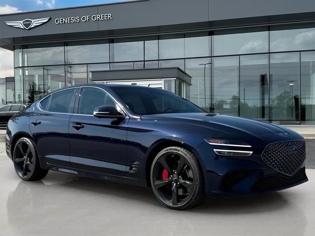 Thank you for checking out our website at www.GenesisOfGreer.com where we help you find the best vehicle that meets your needs wrapped in a deal you will not want to walk away from. If you have any questions please call us at 864-334-8416 or visit us in person at Fred Anderson Genesis of Greer located at 13730 East Wade Hampton Blvd Greer, SC 29651 to learn more! All prices exclude tax, tag, license, title, and registration for your state; and our admin ($499) fees. All vehicle internet pricing is subject to change and requires standard financing. From time to time in the transfer of data on the internet, there are errors. Dealer is not responsible for errors in advertised prices. See dealer for complete details. Option Group 01, 15 Speakers, 4-Wheel Disc Brakes, ABS brakes, Air Conditioning, Alloy wheels, AM/FM radio: SiriusXM, Android Auto & Apple CarPlay, Anti-whiplash front head restraints, Auto High-beam Headlights, Auto-dimming door mirrors, Auto-dimming Rear-View mirror, Automatic temperature control, Brake assist, Bumpers: body-color, Delay-off headlights, Driver door bin, Driver vanity mirror, Dual front impact airbags, Dual front side impact airbags, Electronic Stability Control, Emergency communication system: Genesis Connected Services, Exterior Parking Camera Rear, First Aid Kit, Four wheel independent suspension, Front anti-roll bar, Front Bucket Seats, Front Center Armrest, Front dual zone A/C, Front reading lights, Fully automatic headlights, Garage door transmitter: HomeLink, Heads-Up Display, Heated door mirrors, Heated front seats, Heated steering wheel, Htd & Ventilated Multi-Adjustable Fr Bucket Seats, Illuminated Door Scuff Plates, Illuminated entry, Knee airbag, Leather Seating Surfaces, Low tire pressure warning, Memory seat, Navigation System, NFC Key Card, Occupant sensing airbag, Outside temperature display, Overhead airbag, Overhead console, Panic alarm, Passenger door bin, Passenger vanity mirror, Power door mirrors, Power driver seat, Power moonroof, Power passenger seat, Power steering, Power windows, Radio: AM/FM/SiriusXM/HD Lexicon Prem Audio System, Rain sensing wipers, Rear anti-roll bar, Rear reading lights, Rear seat center armrest, Rear side impact airbag, Rear window defroster, Remote keyless entry, Reversible Cargo Tray, Security system, Speed control, Speed-sensing steering, Speed-Sensitive Wipers, Split folding rear seat, Steering wheel memory, Steering wheel mounted audio controls, Tachometer, Telescoping steering wheel, Traction control, Trip computer, Turn signal indicator mirrors, Variably intermittent wipers, Ventilated front seats, and Wheels: 19" x 8.0J Fr & 19" x 8.5J Rr Sport AlloY.