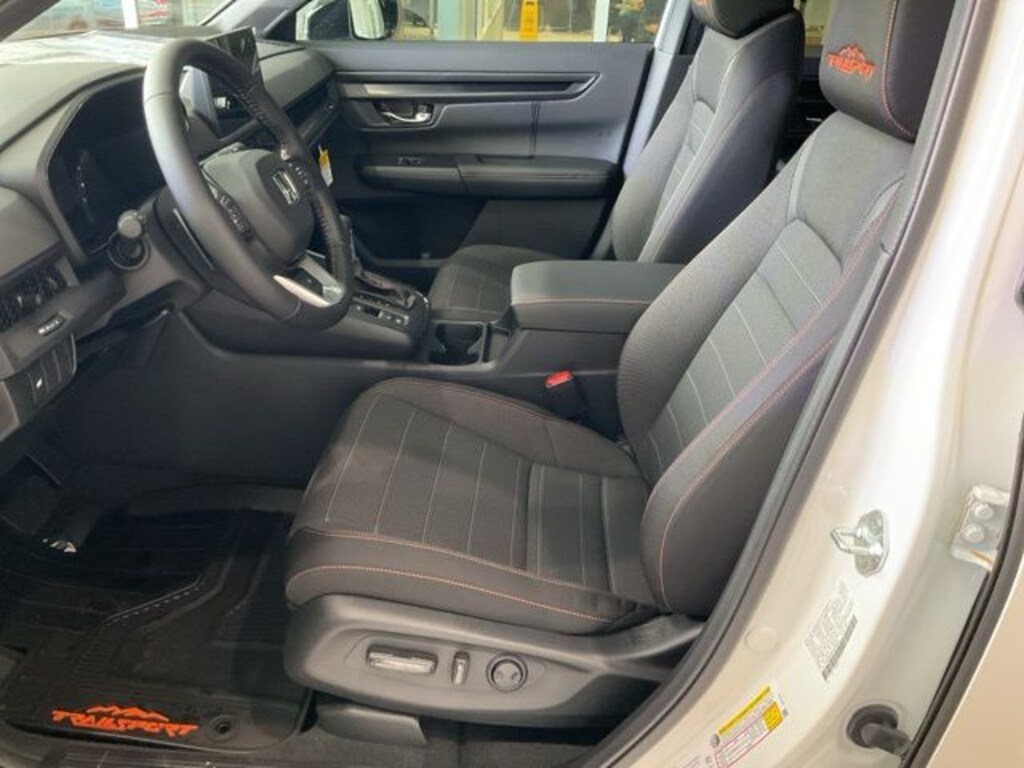 The interior of this CR-V Hybrid TrailSport is a testament to Honda's commitment to quality and comfort. The spacious cabin features premium cloth seat trim, a heated steering wheel, and a host of advanced technology features, including Apple CarPlay and Android Auto integration. The generous cargo space and split-folding rear seats provide the flexibility to accommodate your lifestyle, whether you're embarking on a weekend adventure or running errands around town.