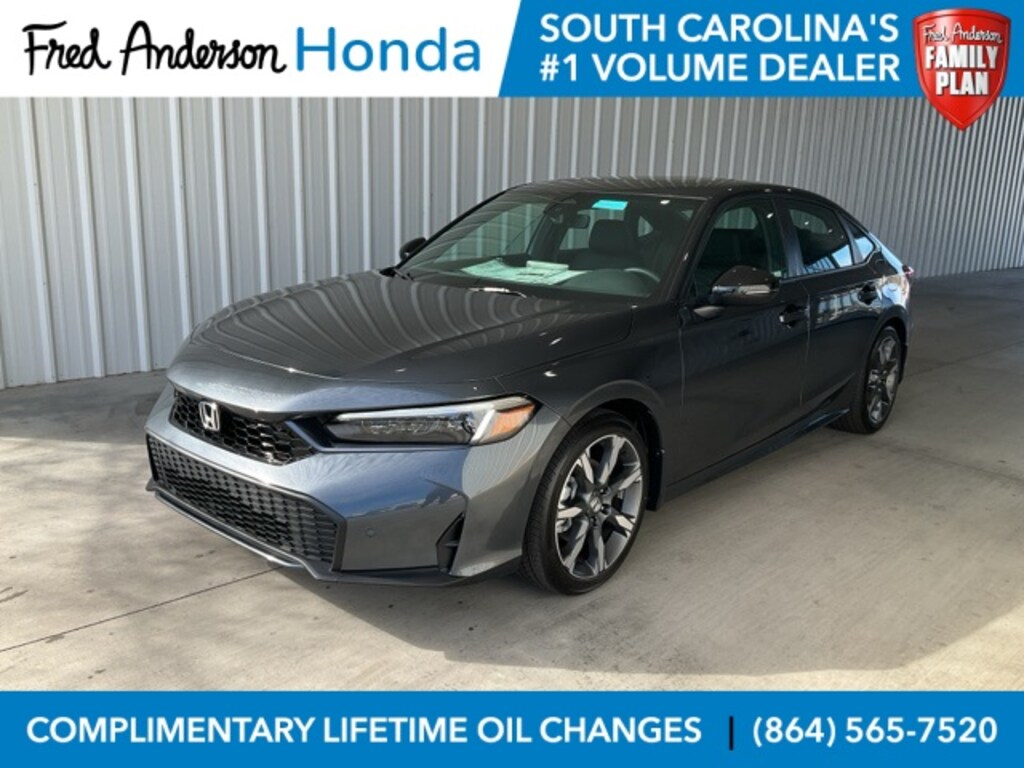 Quite possibly the perfect car for you! Includes the FAMILY PLAN!! Lifetime oil changes, 3 day exchange program, lifetime loaner cars, and much more! 2026 Honda Civic Hybrid Sport Touring 2.0L 16V DOHC, ABS brakes, Active Cruise Control, Alloy wheels, Compass, Electronic Stability Control, Front dual zone A/C, Heated door mirrors, Heated Front Bucket Seats, Heated front seats, Illuminated entry, Low tire pressure warning, Navigation System, Power moonroof, Remote keyless entry, Traction control.