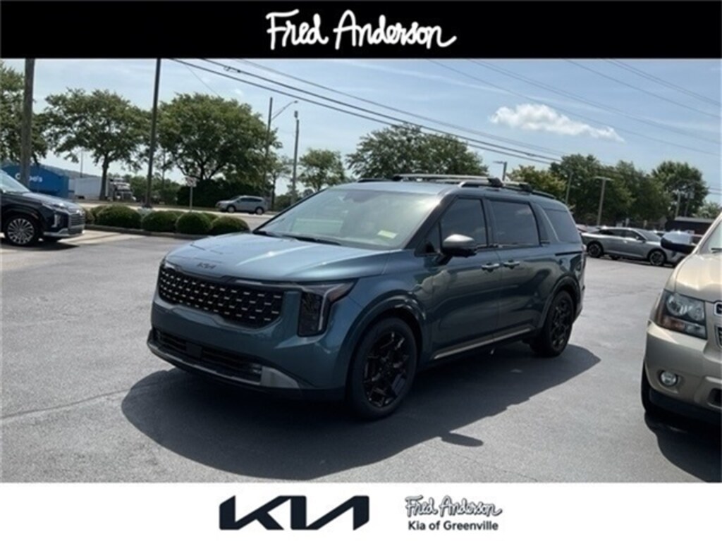 Thank you for checking out our website at www.KiaOfGreenville.com where we help you find the best vehicle that meets your needs wrapped in a deal you will not want to walk away from. If you have any questions please call us at 864-412-4061 or visit us in person at Fred Anderson Kia of Greenville located at 2424 Laurens Rd Greenville, SC 29607 to learn more! Qualifying New Vehicles bought and serviced here receive our FULL ANDERSON FAMILY PLAN at NO COST to YOU! Our full family plan includes: Peace of Mind 3-Day Vehicle Exchange*Lifetime Oil Changes*Service Loaners*Loyalty Discounts after 50,000 miles All prices exclude tax, tag, license, title, and registration for your state; and our admin ($499) fees. All vehicle internet pricing is subject to change and requires standard financing. From time to time in the transfer of data on the internet, there are errors. Dealer is not responsible for errors in advertised prices. See dealer for complete details. SX Prestige Seat Package (2nd Row Laminated Windows, Ambient Lighting, Heated/Ventilated 2nd Row Power VIP Lounge Seats, and High Glossy Interior Trim), 12 Speakers, 3.51 Axle Ratio, 3rd row seats: split-bench, 4-Wheel Disc Brakes, ABS brakes, Air Conditioning, Alloy wheels, AM/FM radio: SiriusXM, Apple CarPlay & Android Auto, Auto High-beam Headlights, Auto-dimming Rear-View mirror, Automatic temperature control, Brake assist, Bumpers: body-color, Cargo Mat, Compass, Cross Bars, Delay-off headlights, Driver door bin, Driver vanity mirror, Dual front impact airbags, Dual front side impact airbags, Electronic Stability Control, Emergency communication system, Exterior Parking Camera Rear, Four wheel independent suspension, Front anti-roll bar, Fr