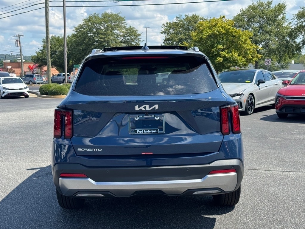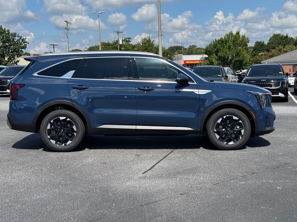 2025 Kia Sorento S Midnight Lake Blue 3rd row seats: split-bench, 4-Wheel Disc Brakes, 6 Speakers, ABS brakes, Air Conditioning, Alloy wheels, AM/FM radio: SiriusXM, Apple CarPlay & Android Auto, Auto High-beam Headlights, Auto-Dimming Mirror w/HomeLink, Automatic temperature control, Brake assist, Bumpers: body-color, Cargo Net, Carpeted Floor Mats, Delay-off headlights, Driver door bin, Driver vanity mirror, Dual front impact airbags, Dual front side impact airbags, Electronic Stability Control, Emergency communication system: 911 Connect, Exterior Parking Camera Rear, Four wheel independent suspension, Front anti-roll bar, Front Bucket Seats, Front Center Armrest, Front dual zone A/C, Front reading lights, Fully automatic headlights, Heated door mirrors, Heated Front Bucket Seats, Heated front seats, Illuminated entry, Knee airbag, Leather Shift Knob, Leather steering wheel, LED Interior Lighting, Low tire pressure warning, Navigation System, Occupant sensing airbag, Outside temperature display, Overhead airbag, Overhead console, Panic alarm, Panoramic Power Sunroof w/Power Sunshade, Panoramic Sunroof Package, Passenger door bin, Passenger vanity mirror, Power door mirrors, Power driver seat, Power steering, Power windows, Radio data system, Radio: AM/FM Standard Sound System, Rear anti-roll bar, Rear reading lights, Rear seat center armrest, Rear side impact airbag, Rear window defroster, Rear window wiper, Remote keyless entry, Security system, Speed control, Speed-sensing steering, Split folding rear seat, Spoiler, Steering wheel mounted audio controls, SynTex Artificial Leather Seat Trim, Tachometer, Telescoping steering wheel, Tilt steering wheel, Traction control, Trip computer, Turn signal indicator mirrors, Variably intermittent wipers, Wheels: 18" Gloss Black Alloy.