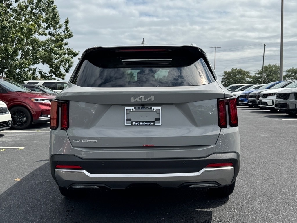 2025 Kia Sorento S Wolf Gray 3rd row seats: split-bench, 4-Wheel Disc Brakes, 6 Speakers, ABS brakes, Air Conditioning, Alloy wheels, AM/FM radio: SiriusXM, Apple CarPlay & Android Auto, Auto High-beam Headlights, Auto-Dimming Mirror w/HomeLink, Automatic temperature control, Brake assist, Bumpers: body-color, Cargo Net, Carpeted Floor Mats, Delay-off headlights, Driver door bin, Driver vanity mirror, Dual front impact airbags, Dual front side impact airbags, Electronic Stability Control, Emergency communication system: 911 Connect, Exterior Parking Camera Rear, Four wheel independent suspension, Front anti-roll bar, Front Bucket Seats, Front Center Armrest, Front dual zone A/C, Front reading lights, Fully automatic headlights, Heated door mirrors, Heated Front Bucket Seats, Heated front seats, Illuminated entry, Knee airbag, Leather Shift Knob, Leather steering wheel, LED Interior Lighting, Low tire pressure warning, Navigation System, Occupant sensing airbag, Outside temperature display, Overhead airbag, Overhead console, Panic alarm, Panoramic Power Sunroof w/Power Sunshade, Panoramic Sunroof Package, Passenger door bin, Passenger vanity mirror, Power door mirrors, Power driver seat, Power steering, Power windows, Radio data system, Radio: AM/FM Standard Sound System, Rear anti-roll bar, Rear reading lights, Rear seat center armrest, Rear side impact airbag, Rear window defroster, Rear window wiper, Remote keyless entry, Security system, Speed control, Speed-sensing steering, Split folding rear seat, Spoiler, Steering wheel mounted audio controls, SynTex Artificial Leather Seat Trim, Tachometer, Telescoping steering wheel, Tilt steering wheel, Traction control, Trip computer, Turn signal indicator mirrors, Variably intermittent wipers, Wheels: 18" Gloss Black Alloy.