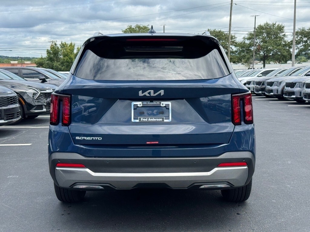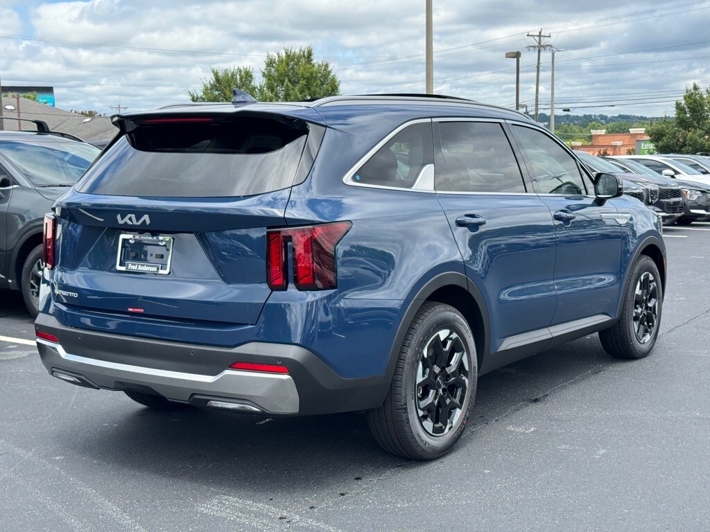 2025 Kia Sorento S Midnight Lake Blue 3rd row seats: split-bench, 4-Wheel Disc Brakes, 6 Speakers, ABS brakes, Air Conditioning, Alloy wheels, AM/FM radio: SiriusXM, Apple CarPlay & Android Auto, Auto High-beam Headlights, Auto-Dimming Mirror w/HomeLink, Automatic temperature control, Brake assist, Bumpers: body-color, Cargo Tray, Carpeted Floor Mats, Delay-off headlights, Driver door bin, Driver vanity mirror, Dual front impact airbags, Dual front side impact airbags, Electronic Stability Control, Emergency communication system: 911 Connect, Exterior Parking Camera Rear, Four wheel independent suspension, Front anti-roll bar, Front Bucket Seats, Front Center Armrest, Front dual zone A/C, Front reading lights, Fully automatic headlights, Heated door mirrors, Heated Front Bucket Seats, Heated front seats, Illuminated entry, Knee airbag, Leather Shift Knob, Leather steering wheel, LED Interior Lighting, Low tire pressure warning, Navigation System, Occupant sensing airbag, Outside temperature display, Overhead airbag, Overhead console, Panic alarm, Panoramic Power Sunroof w/Power Sunshade, Panoramic Sunroof Package, Passenger door bin, Passenger vanity mirror, Power door mirrors, Power driver seat, Power steering, Power windows, Radio data system, Radio: AM/FM Standard Sound System, Rear anti-roll bar, Rear reading lights, Rear seat center armrest, Rear side impact airbag, Rear window defroster, Rear window wiper, Remote keyless entry, Security system, Speed control, Speed-sensing steering, Split folding rear seat, Spoiler, Steering wheel mounted audio controls, SynTex Artificial Leather Seat Trim, Tachometer, Telescoping steering wheel, Tilt steering wheel, Traction control, Trip computer, Turn signal indicator mirrors, Variably intermittent wipers, Wheels: 18" Gloss Black Alloy.