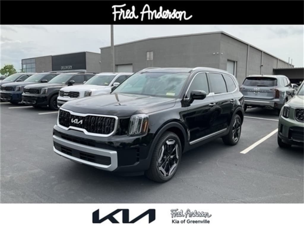 2025 Kia Telluride EX Ebony Black 2nd Row Captain Chairs, 3rd row seats: split-bench, 4-Wheel Disc Brakes, 6 Speakers, ABS brakes, Air Conditioning, Alloy wheels, AM/FM radio: SiriusXM, Apple CarPlay & Android Auto, Auto High-beam Headlights, Auto-dimming Rear-View mirror, Automatic temperature control, Brake assist, Bumpers: body-color, Compass, Delay-off headlights, Driver door bin, Driver vanity mirror, Dual front impact airbags, Dual front side impact airbags, Electronic Stability Control, Emergency communication system: 911 Connect, EX Captain's Chair Package, Exterior Parking Camera Rear, Four wheel independent suspension, Front anti-roll bar, Front Bucket Seats, Front Center Armrest, Front dual zone A/C, Front reading lights, Fully automatic headlights, Heated & Ventilated Front Bucket Seats, Heated door mirrors, Heated front seats, Illuminated entry, Knee airbag, Leather Seat Trim, Leather Shift Knob, Leather steering wheel, Low tire pressure warning, Navigation System, Occupant sensing airbag, Outside temperature display, Overhead airbag, Overhead console, Panic alarm, Passenger door bin, Passenger vanity mirror, Power door mirrors, Power driver seat, Power Liftgate, Power moonroof, Power passenger seat, Power steering, Power windows, Radio data system, Radio: AM/FM Display Audio System, Rear air conditioning, Rear anti-roll bar, Rear audio controls, Rear reading lights, Rear seat center armrest, Rear side impact airbag, Rear window defroster, Rear window wiper, Reclining 3rd row seat, Remote keyless entry, Security system, Speed control, Speed-sensing steering, Split folding rear seat, Spoiler, Steering wheel mounted audio controls, Tachometer, Telescoping steering wheel, Tilt steering wheel, Traction control, Trip computer, Turn signal indicator mirrors, Variably intermittent wipers, Ventilated front seats, Wheels: 20" x 7.5" Black Finish.