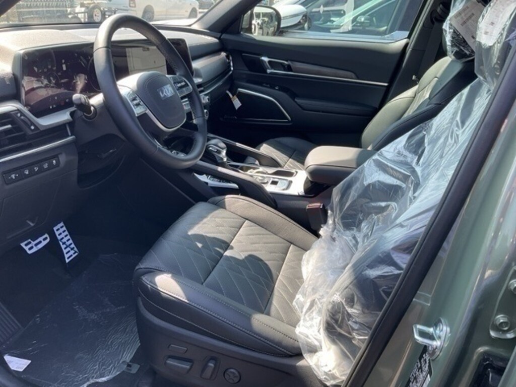 2025 Kia Telluride SX X-Line Jungle Green 10 Speakers, 3rd row seats: split-bench, 4-Wheel Disc Brakes, ABS brakes, Air Conditioning, Alloy wheels, AM/FM radio: SiriusXM, Apple CarPlay & Android Auto, Auto High-beam Headlights, Auto-dimming Rear-View mirror, Auto-leveling suspension, Automatic temperature control, Brake assist, Bumpers: body-color, Carpet Cargo Mat w/Seatback Protection, Compass, Delay-off headlights, Driver door bin, Driver vanity mirror, Dual front impact airbags, Dual front side impact airbags, Electronic Stability Control, Emergency communication system: 911 Connect, Exterior Parking Camera Rear, Four wheel independent suspension, Front anti-roll bar, Front Bucket Seats, Front Center Armrest, Front dual zone A/C, Front fog lights, Front reading lights, Fully automatic headlights, Garage door transmitter: HomeLink, harman/kardon® Speakers, Heated & Ventilated Front Bucket Seats, Heated door mirrors, Heated front seats, Heated steering wheel, Illuminated entry, Knee airbag, Leather Seat Trim, Leather Shift Knob, Leather steering wheel, Low tire pressure warning, Memory seat, Navigation System, Occupant sensing airbag, Outside temperature display, Overhead airbag, Overhead console, Panic alarm, Passenger door bin, Passenger vanity mirror, Power door mirrors, Power driver seat, Power Liftgate, Power moonroof, Power passenger seat, Power steering, Power windows, Radio data system, Radio: AM/FM Harman Kardon Audio System, Rear air conditioning, Rear anti-roll bar, Rear audio controls, Rear reading lights, Rear Seat Entertainment System, Rear side impact airbag, Rear window defroster, Rear window wiper, Reclining 3rd row seat, Remote keyless entry, Security system, Speed control, Speed-sensing steering, Split folding rear seat, Spoiler, Steering wheel mounted audio controls, Tachometer, Telescoping steering wheel, Tilt steering wheel, Traction control, Trip computer, Turn signal indicator mirrors, Variably intermittent wipers, Ventilated front seats, Wheels: 20" x 7.5" Black Finish X-LINE Exclusive.