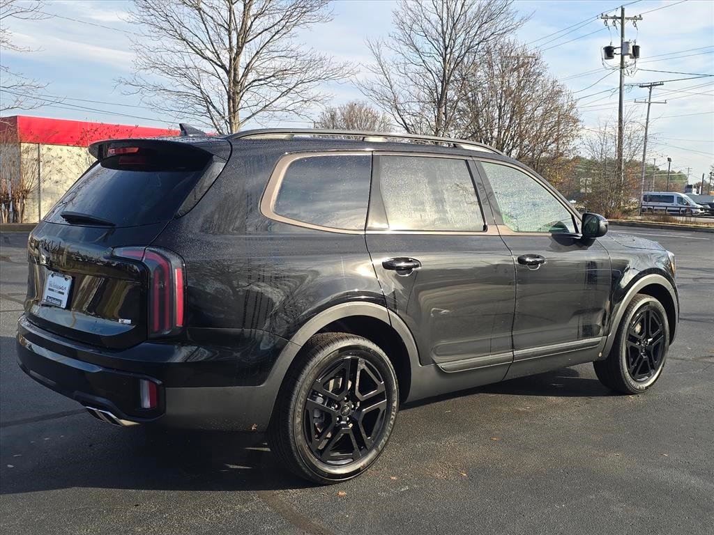 2025 Kia Telluride EX X-Line Ebony Black 3rd row seats: split-bench, 4-Wheel Disc Brakes, 6 Speakers, ABS brakes, Air Conditioning, Alloy wheels, AM/FM radio: SiriusXM, Apple CarPlay & Android Auto, Auto High-beam Headlights, Auto-dimming Rear-View mirror, Auto-leveling suspension, Automatic temperature control, Brake assist, Bumpers: body-color, Carpeted Floor Mats, Compass, Delay-off headlights, Driver door bin, Driver vanity mirror, Dual front impact airbags, Dual front side impact airbags, Electronic Stability Control, Emergency communication system: 911 Connect, Exterior Parking Camera Rear, Folding Cargo Tray, Four wheel independent suspension, Front anti-roll bar, Front Bucket Seats, Front Center Armrest, Front dual zone A/C, Front reading lights, Fully automatic headlights, Heated & Ventilated Front Bucket Seats, Heated door mirrors, Heated front seats, Heated steering wheel, Illuminated entry, Knee airbag, Leather Seat Trim, Leather Shift Knob, Leather steering wheel, Low tire pressure warning, Navigation System, Occupant sensing airbag, Outside temperature display, Overhead airbag, Overhead console, Panic alarm, Passenger door bin, Passenger vanity mirror, Power door mirrors, Power driver seat, Power Liftgate, Power moonroof, Power passenger seat, Power steering, Power windows, Radio data system, Radio: AM/FM Display Audio System, Rear air conditioning, Rear anti-roll bar, Rear audio controls, Rear reading lights, Rear side impact airbag, Rear window defroster, Rear window wiper, Reclining 3rd row seat, Remote keyless entry, Security system, Speed control, Speed-sensing steering, Split folding rear seat, Spoiler, Steering wheel mounted audio controls, Tachometer, Telescoping steering wheel, Tilt steering wheel, Traction control, Trip computer, Turn signal indicator mirrors, Variably intermittent wipers, Ventilated front seats, Wheels: 20" x 7.5" Black Finish X-LINE Exclusive.