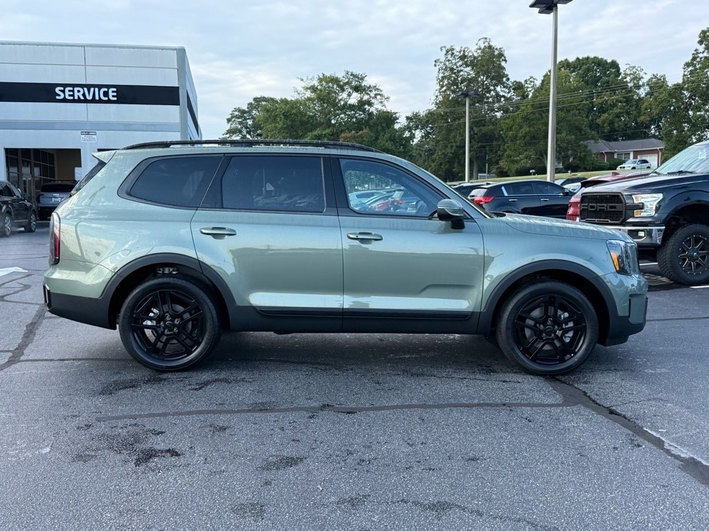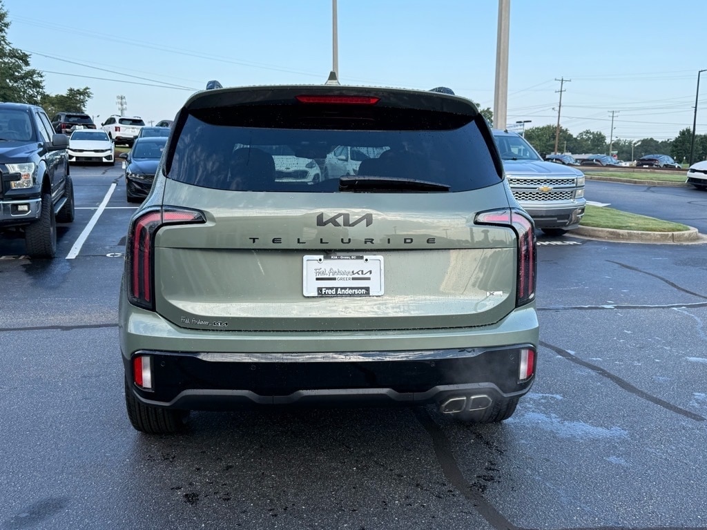 2025 Kia Telluride EX X-Line Jungle Green 3rd row seats: split-bench, 4-Wheel Disc Brakes, 6 Speakers, ABS brakes, Air Conditioning, All Weather Floor Mats, Alloy wheels, AM/FM radio: SiriusXM, Apple CarPlay & Android Auto, Auto High-beam Headlights, Auto-dimming Rear-View mirror, Auto-leveling suspension, Automatic temperature control, Brake assist, Bumpers: body-color, Compass, Delay-off headlights, Driver door bin, Driver vanity mirror, Dual front impact airbags, Dual front side impact airbags, Electronic Stability Control, Emergency communication system: 911 Connect, Exterior Parking Camera Rear, Folding Cargo Tray, Four wheel independent suspension, Front anti-roll bar, Front Bucket Seats, Front Center Armrest, Front dual zone A/C, Front reading lights, Fully automatic headlights, Heated & Ventilated Front Bucket Seats, Heated door mirrors, Heated front seats, Heated steering wheel, Illuminated entry, Knee airbag, Leather Seat Trim, Leather Shift Knob, Leather steering wheel, Low tire pressure warning, Navigation System, Occupant sensing airbag, Outside temperature display, Overhead airbag, Overhead console, Panic alarm, Passenger door bin, Passenger vanity mirror, Power door mirrors, Power driver seat, Power Liftgate, Power moonroof, Power passenger seat, Power steering, Power windows, Radio data system, Radio: AM/FM Display Audio System, Rear air conditioning, Rear anti-roll bar, Rear audio controls, Rear reading lights, Rear side impact airbag, Rear window defroster, Rear window wiper, Reclining 3rd row seat, Remote keyless entry, Security system, Speed control, Speed-sensing steering, Split folding rear seat, Spoiler, Steering wheel mounted audio controls, Tachometer, Telescoping steering wheel, Tilt steering wheel, Traction control, Trip computer, Turn signal indicator mirrors, Variably intermittent wipers, Ventilated front seats, Wheels: 20" x 7.5" Black Finish X-LINE Exclusive.