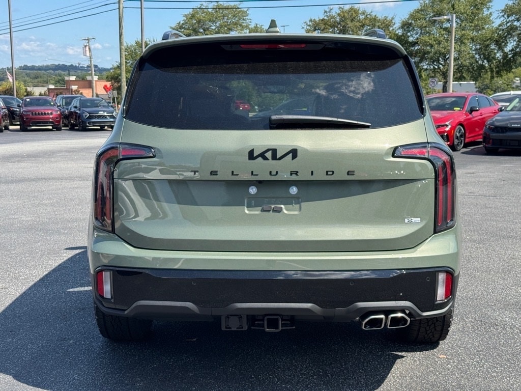 2025 Kia Telluride SX-Prestige X-Pro Jungle Green 10 Speakers, 3rd row seats: split-bench, 4-Wheel Disc Brakes, ABS brakes, Air Conditioning, Alloy wheels, AM/FM radio: SiriusXM, Apple CarPlay & Android Auto, Auto High-beam Headlights, Auto-dimming Rear-View mirror, Auto-leveling suspension, Automatic temperature control, Brake assist, Bumpers: body-color, Carpet Cargo Mat w/Seatback Protection, Compass, Delay-off headlights, Driver door bin, Driver vanity mirror, Dual front impact airbags, Dual front side impact airbags, Electronic Stability Control, Emergency communication system: 911 Connect, Exterior Parking Camera Rear, Four wheel independent suspension, Front anti-roll bar, Front Bucket Seats, Front Center Armrest, Front dual zone A/C, Front fog lights, Front reading lights, Fully automatic headlights, Garage door transmitter: HomeLink, harman/kardon® Speakers, Heads-Up Display, Heated & Ventilated Front Bucket Seats, Heated door mirrors, Heated front seats, Heated rear seats, Heated steering wheel, Illuminated entry, Knee airbag, Leather Shift Knob, Leather steering wheel, Low tire pressure warning, Memory seat, Mud Guard Kit, Nappa Leather Seat Trim, Navigation System, Occupant sensing airbag, Outside temperature display, Overhead airbag, Overhead console, Panic alarm, Passenger door bin, Passenger vanity mirror, Power door mirrors, Power driver seat, Power Liftgate, Power moonroof, Power passenger seat, Power steering, Power windows, Radio data system, Radio: AM/FM Harman Kardon Audio System, Rain sensing wipers, Rear air conditioning, Rear anti-roll bar, Rear audio controls, Rear reading lights, Rear side impact airbag, Rear window defroster, Rear window wiper, Reclining 3rd row seat, Remote keyless entry, Security system, Speed control, Speed-sensing steering, Split folding rear seat, Spoiler, Steering wheel mounted audio controls, Tachometer, Telescoping steering wheel, Terracotta Interior Color Package, Tilt steering wheel, Tow Hitch w/Cover, Traction control, Trip computer, Turn signal indicator mirrors, Variably intermittent wipers, Ventilated front seats, Ventilated rear seats, Wheels: 18" x 7.5" Black Finish X-PRO Exclusive.