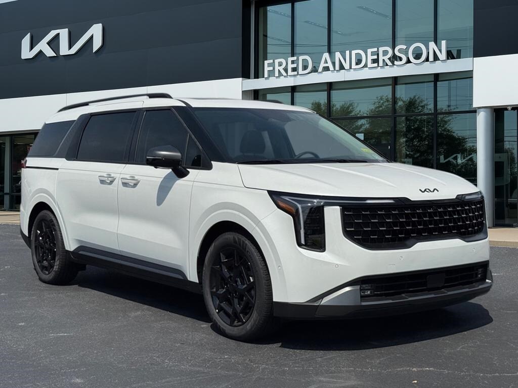 Thank you for checking out our website at www.KiaOfGreenville.com where we help you find the best vehicle that meets your needs wrapped in a deal you will not want to walk away from. If you have any questions please call us at 864-412-4061 or visit us in person at Fred Anderson Kia of Greenville located at 2424 Laurens Rd Greenville, SC 29607 to learn more! Qualifying New Vehicles bought and serviced here receive our FULL ANDERSON FAMILY PLAN at NO COST to YOU! Our full family plan includes: Peace of Mind 3-Day Vehicle Exchange*Lifetime Oil Changes*Service Loaners*Loyalty Discounts after 50,000 miles All prices exclude tax, tag, license, title, and registration for your state; and our admin ($499) fees. All vehicle internet pricing is subject to change and requires standard financing. From time to time in the transfer of data on the internet, there are errors. Dealer is not responsible for errors in advertised prices. See dealer for complete details. 12 Speakers, 3.51 Axle Ratio, 3rd row seats: split-bench, 4-Wheel Disc Brakes, ABS brakes, Air Conditioning, Alloy wheels, AM/FM radio: SiriusXM, Apple CarPlay & Android Auto, Auto High-beam Headlights, Auto-dimming Rear-View mirror, Automatic temperature control, Brake assist, Bumpers: body-color, Cargo Mat, Cargo Net, Cargo Tray, Carpeted Floor Mats (8-Passenger), Compass, Delay-off headlights, Driver door bin, Driver vanity mirror, Dual front impact airbags, Dual front side impact airbags, Electronic Stability Control, Emergency communication system, Exterior Parking Camera Rear, Four wheel independent suspension, Front anti-roll bar, Front Bucket Seats, Front Center Armrest, Front dual zone A/C, Front fog lights, Front reading lights, Fully automatic headlights, Garage door transmitter: HomeLink, Heads-Up Display, Heated & Ventilated Front Bucket Seats, Heated door mirrors, Heated front seats, Heated steering wheel, Illuminated en