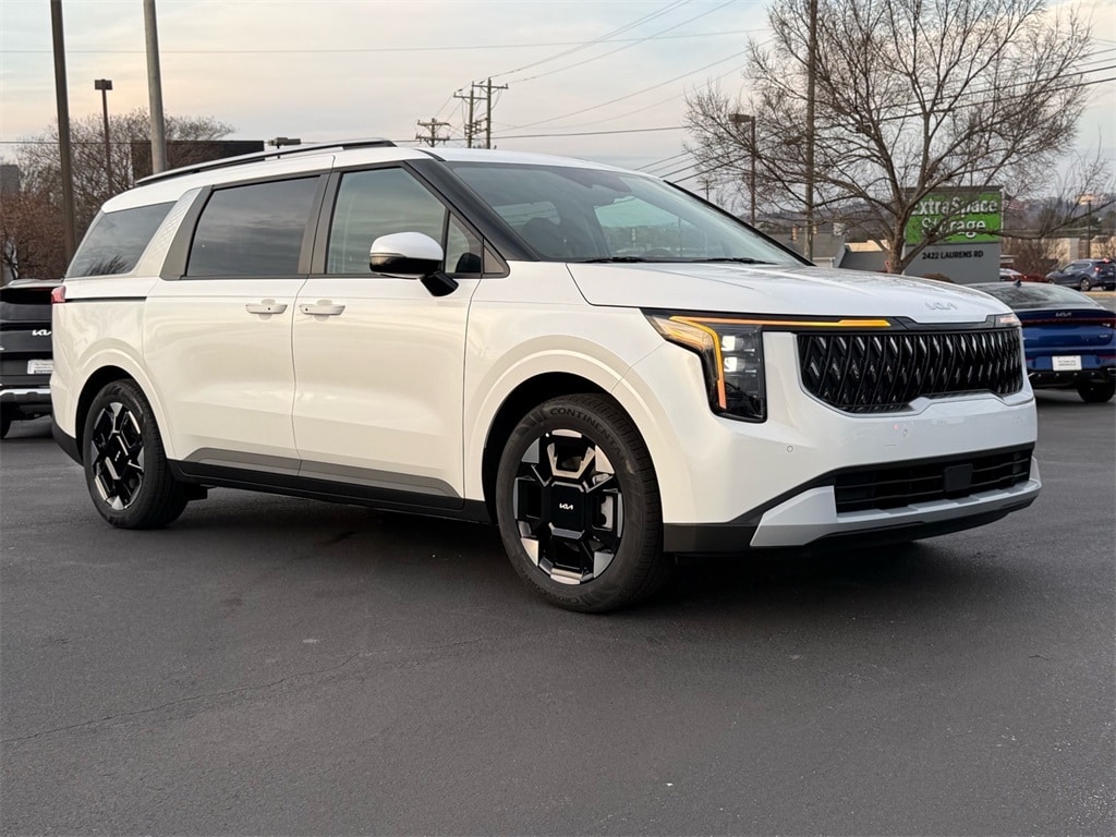 Thank you for checking out our website at www.KiaOfGreenville.com where we help you find the best vehicle that meets your needs wrapped in a deal you will not want to walk away from. If you have any questions please call us at 864-412-4061 or visit us in person at Fred Anderson Kia of Greenville located at 2424 Laurens Rd Greenville, SC 29607 to learn more! Qualifying New Vehicles bought and serviced here receive our FULL ANDERSON FAMILY PLAN at NO COST to YOU! Our full family plan includes: Peace of Mind 3-Day Vehicle Exchange*Lifetime Oil Changes*Service Loaners*Loyalty Discounts after 50,000 miles All prices exclude tax, tag, license, title, and registration for your state; and our admin ($499) fees. All vehicle internet pricing is subject to change and requires standard financing. From time to time in the transfer of data on the internet, there are errors. Dealer is not responsible for errors in advertised prices. See dealer for complete details. 3.51 Axle Ratio, 3rd row seats: split-bench, 4-Wheel Disc Brakes, 8 Speakers, ABS brakes, Air Conditioning, Alloy wheels, AM/FM radio: SiriusXM, Apple CarPlay & Android Auto, Artificial Leather Seat Trim, Auto High-beam Headlights, Auto-Dimming Mirror with HomeLink, Automatic temperature control, Brake assist, Bumpers: body-color, Carpeted Floor Mats (8-Passenger), Compass, Delay-off headlights, Driver door bin, Driver vanity mirror, Dual front impact airbags, Dual front side impact airbags, Electronic Stability Control, Emergency communication system, Exterior Parking Camera Rear, Four wheel independent suspension, Front anti-roll bar, Front Bucket Seats, Front Center Armrest, Front dual zone A/C, Front reading lights, Fully automatic headlights, Heated door mirrors, Heated Front Bucket Seats, Heated front seats, Illuminated entry, Knee airbag, Leather Shift Knob, Leather steering wheel, Low tire pressure warning, Memory seat, Navigation System, Occupant sensing airbag, Outside temperature display, Overhead airbag, Overhead console, Panic alarm, Passenger door bin, Passenger vanity mirror, Power door mirrors, Power driver seat, Power Liftgate, Power p
