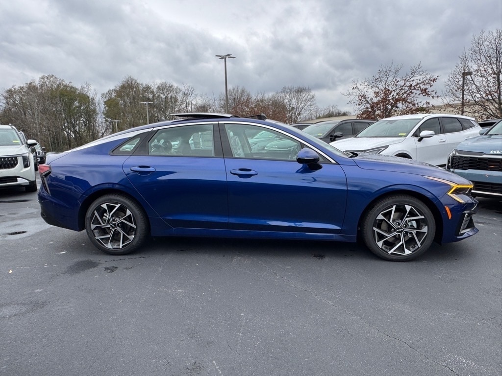 2026 Kia K5 EX Yacht Blue 12 Speakers, 4-Wheel Disc Brakes, ABS brakes, Air Conditioning, Alloy wheels, AM/FM radio: SiriusXM, Auto High-beam Headlights, Auto-Dimming Mirror with HomeLink, Automatic temperature control, Brake assist, Bumpers: body-color, Cargo Mat, Carpeted Floor Mats, Delay-off headlights, Driver door bin, Driver vanity mirror, Dual front impact airbags, Dual front side impact airbags, Electronic Stability Control, Emergency communication system: Kia Connect (includes 1 year free trial), Four wheel independent suspension, Front anti-roll bar, Front Bucket Seats, Front Center Armrest, Front dual zone A/C, Front reading lights, Fully automatic headlights, Heated and Ventilated Front Bucket Seats, Heated door mirrors, Heated front seats, Heated steering wheel, Illuminated entry, Knee airbag, Leather Shift Knob, Leather steering wheel, Low tire pressure warning, Memory seat, Navigation System, Occupant sensing airbag, Outside temperature display, Overhead airbag, Overhead console, Panic alarm, Passenger door bin, Passenger vanity mirror, Power door mirrors, Power driver seat, Power moonroof, Power passenger seat, Power steering, Power windows, Radio data system, Radio: AM/FM Audio System, Rear anti-roll bar, Rear reading lights, Rear seat center armrest, Rear side impact airbag, Rear window defroster, Remote keyless entry, Security system, Speed control, Speed-sensing steering, Split folding rear seat, Steering wheel mounted audio controls, SynTex Seat Trim, Tachometer, Telescoping steering wheel, Tilt steering wheel, Traction control, Trip computer, Turn signal indicator mirrors, Variably intermittent wipers, Ventilated front seats, Wheels: 18" x 7.5J Gloss Black Machined Finish Alloy.