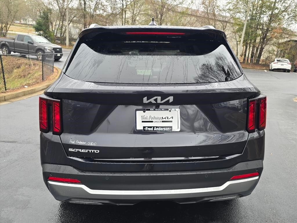2026 Kia Sorento EX Panthera Metal 2nd Row Captain's Chairs, 3rd row seats: split-bench, 4-Wheel Disc Brakes, 6 Speakers, ABS brakes, Air Conditioning, Alloy wheels, AM/FM radio: SiriusXM, Apple CarPlay & Android Auto, Auto High-beam Headlights, Auto-Dimming Mirror w/HomeLink (PnP), Auto-dimming Rear-View mirror, Automatic temperature control, Brake assist, Bumpers: body-color, Carpeted Floor Mats, Delay-off headlights, Driver door bin, Driver vanity mirror, Dual front impact airbags, Dual front side impact airbags, Electronic Stability Control, Emergency communication system: 911 Connect, EX Premium Package, Exterior Parking Camera Rear, Four wheel independent suspension, Front anti-roll bar, Front Bucket Seats, Front Center Armrest, Front dual zone A/C, Front fog lights, Front reading lights, Full-Length One-Touch Panoroof w/Sliding Sunshade, Fully automatic headlights, Heated door mirrors, Heated Front Bucket Seats, Heated front seats, Illuminated entry, Knee airbag, Leather Shift Knob, Leather steering wheel, LED Interior Lighting, Low tire pressure warning, Navigation System, Occupant sensing airbag, Outside temperature display, Overhead airbag, Overhead console, Panic alarm, Passenger door bin, Passenger vanity mirror, Power door mirrors, Power driver seat, Power Liftgate, Power passenger seat, Power steering, Power windows, Radio data system, Radio: AM/FM Bose Premium Audio System, Radio: AM/FM Standard Sound System, Rear anti-roll bar, Rear reading lights, Rear seat center armrest, Rear side impact airbag, Rear window defroster, Rear window wiper, Remote keyless entry, Security system, Speed control, Speed-sensing steering, Split folding rear seat, Spoiler, Steering wheel mounted audio controls, SynTex Artificial Leather Seat Trim, Tachometer, Telescoping steering wheel, Tilt steering wheel, Traction control, Trip computer, Turn signal indicator mirrors, Variably intermittent wipers, Wheels: 20" Machine-Finished Gloss Black Alloy.