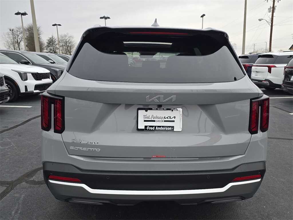 2026 Kia Sorento S Wolf Gray 3rd row seats: split-bench, 4-Wheel Disc Brakes, 6 Speakers, ABS brakes, Air Conditioning, Alloy wheels, AM/FM radio: SiriusXM, Apple CarPlay & Android Auto, Auto High-beam Headlights, Automatic temperature control, Brake assist, Bumpers: body-color, Carpeted Floor Mats, Delay-off headlights, Driver door bin, Driver vanity mirror, Dual front impact airbags, Dual front side impact airbags, Electronic Stability Control, Emergency communication system: 911 Connect, Exterior Parking Camera Rear, Four wheel independent suspension, Front anti-roll bar, Front Bucket Seats, Front Center Armrest, Front dual zone A/C, Front reading lights, Fully automatic headlights, Heated door mirrors, Heated Front Bucket Seats, Heated front seats, Illuminated entry, Knee airbag, Leather Shift Knob, Leather steering wheel, LED Interior Lighting, Low tire pressure warning, Occupant sensing airbag, Outside temperature display, Overhead airbag, Overhead console, Panic alarm, Passenger door bin, Passenger vanity mirror, Power door mirrors, Power driver seat, Power steering, Power windows, Radio data system, Radio: AM/FM Standard Sound System, Rear anti-roll bar, Rear reading lights, Rear seat center armrest, Rear side impact airbag, Rear window defroster, Rear window wiper, Remote keyless entry, S Panoramic Sunroof Package, Security system, Speed control, Speed-sensing steering, Split folding rear seat, Spoiler, Steering wheel mounted audio controls, SynTex Artificial Leather Seat Trim, Tachometer, Telescoping steering wheel, Tilt steering wheel, Traction control, Trip computer, Turn signal indicator mirrors, Variably intermittent wipers, Wheels: 18" Gloss Black Alloy.