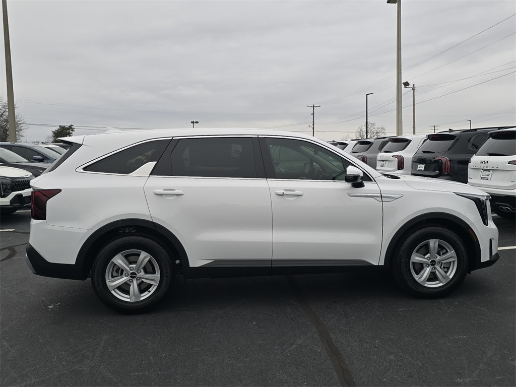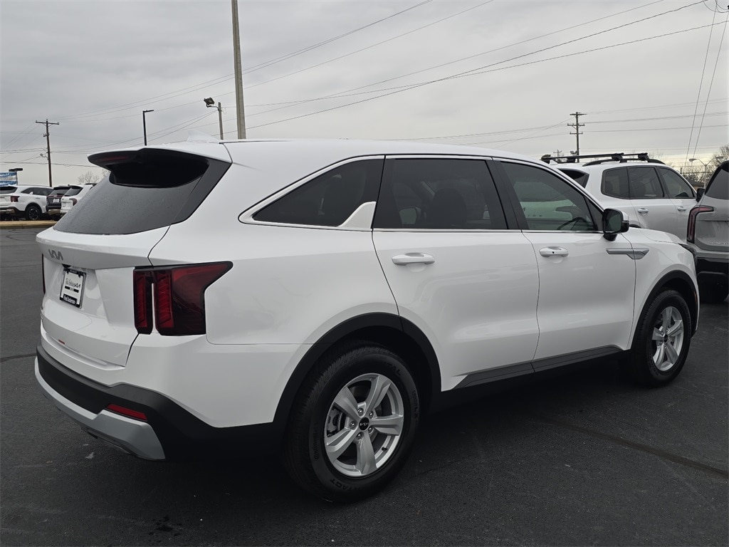 2026 Kia Sorento LX Glacial White Pearl 17" Alloy Wheels, 3rd row seats: split-bench, 4-Wheel Disc Brakes, 6 Speakers, ABS brakes, Air Conditioning, Alloy wheels, AM/FM radio: SiriusXM, Apple CarPlay & Android Auto, Auto High-beam Headlights, Brake assist, Bumpers: body-color, Cloth Seat Trim, Delay-off headlights, Driver door bin, Driver vanity mirror, Dual front impact airbags, Dual front side impact airbags, Electronic Stability Control, Emergency communication system: 911 Connect, Exterior Parking Camera Rear, Four wheel independent suspension, Front anti-roll bar, Front Bucket Seats, Front Center Armrest, Front reading lights, Fully automatic headlights, Heated door mirrors, Illuminated entry, Knee airbag, Leather Shift Knob, Leather steering wheel, Low tire pressure warning, Occupant sensing airbag, Outside temperature display, Overhead airbag, Overhead console, Panic alarm, Passenger door bin, Passenger vanity mirror, Power door mirrors, Power steering, Power windows, Radio data system, Radio: AM/FM Standard Sound System, Rear anti-roll bar, Rear reading lights, Rear seat center armrest, Rear side impact airbag, Rear window defroster, Rear window wiper, Remote keyless entry, Security system, Speed control, Speed-sensing steering, Split folding rear seat, Spoiler, Steering wheel mounted audio controls, Tachometer, Telescoping steering wheel, Tilt steering wheel, Traction control, Trip computer, Turn signal indicator mirrors, Variably intermittent wipers.