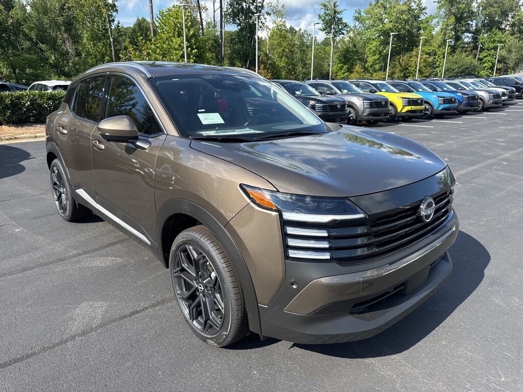 $3,060 off MSRP! Every new Nissan comes with The Family Plan including a 3 day Peace Of Mind Exchange Option, Lifetime Oil Changes, Loaner Cars, Loyalty Discounts and more with no additional charge at Fred Anderson Nissan of Raleigh. Check out all these great options SR Premium Package (Bose 10 -Speaker Audio, Driver Seat-Mounted Supplemental Air Bag, Heated Front Seats, Heated Steering Wheel, Panoramic Moonroof, Rain Sensing Wipers, and Remote Engine Start), 17" Alloy Wheels, 4-Wheel Disc Brakes, 6 Speakers, ABS brakes, Air Conditioning, Alloy wheels, AM/FM radio: Sirius, Auto High-beam Headlights, Automatic temperature control, Brake assist, Bumpers: body-color, Carpeted Floor Mats, Cloth/Leatherette Seat Trim, Delay-off headlights, Door Trim Panel Scuff Plates, Driver door bin, Driver vanity mirror, Dual front impact airbags, Dual front side impact airbags, Electronic Stability Control, Four wheel independent suspension, Front anti-roll bar, Front Bucket Seats, Front Center Armrest, Front reading lights, Fully automatic headlights, Heated door mirrors, Illuminated entry, Knee airbag, Leather Shift Knob, Leather steering wheel, Low tire pressure warning, Occupant sensing airbag, Outside temperature display, Overhead airbag, Overhead console, Panic alarm, Passenger door bin, Passenger vanity mirror, Power door mirrors, Power steering, Power windows, Radio data system, Radio: AM/FM Audio System, Rear anti-roll bar, Rear reading lights, Rear seat center armrest, Rear side impact airbag, Rear window defroster, Rear window wiper, Remote keyless entry, Security system, Speed control, Speed-sensing steering, Split folding rear seat, Spoiler, Sport steering wheel, Steering wheel mounted audio controls, Tachometer, Telescoping steering wheel, Tilt steering wheel, Traction control, Trip computer, Turn signal indicator mirrors, Variably intermittent wipers, Wheels: 19" Alloy (W10), and Wireless Apple CarPlay/Wireless Android Auto. 2025 4D Sport Utility Nissan Kicks Canyon Bronze Metallic SR AWD CVT with Xtronic 2.0L DOHC