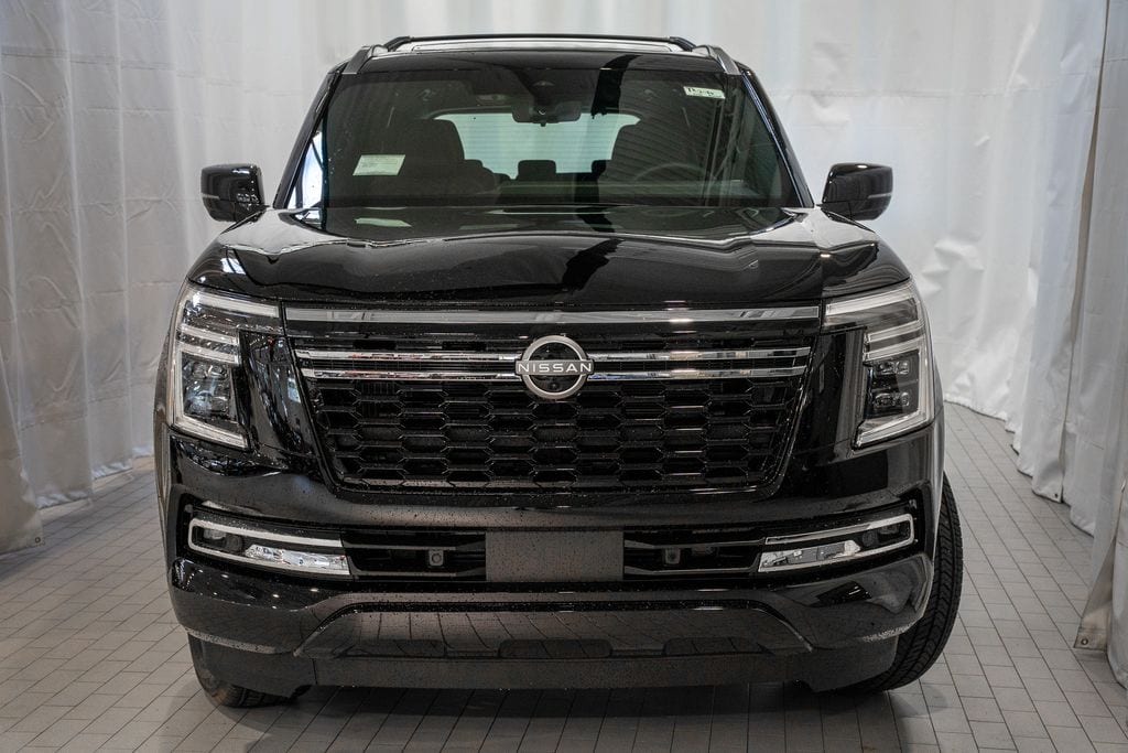 Located At The New Fred Anderson Nissan Of Raleigh On Glenwood Avenue! Right Next To The Angus Barn! $1,560 off MSRP! Every new Nissan comes with The Family Plan including a 3 day Peace Of Mind Exchange Option, Lifetime Oil Changes, Loaner Cars, Loyalty Discounts and more with no additional charge at Fred Anderson Nissan of Raleigh. Check out all these great options 12 Speakers, 3rd row seats: split-bench, 4-Wheel Disc Brakes, ABS brakes, Air Conditioning, Alloy wheels, AM/FM radio: SiriusXM w/360L, Anti-whiplash front head restraints, Apple CarPlay/Android Auto, Auto High-beam Headlights, Auto tilt-away steering wheel, Auto-dimming door mirrors, Auto-dimming Rear-View mirror, Auto-leveling suspension, Automatic temperature control, Brake assist, Bumpers: body-color, Carpeted Floor Mats w/Captain Chairs, Climate Controlled Heated & Ventilated Front Seats, Compass, Cross Bars, Delay-off headlights, Driver door bin, Driver vanity mirror, Dual front impact airbags, Dual front side impact airbags, Electronic Stability Control, Emergency communication system: NissanConnect Services, Four wheel independent suspension, Front anti-roll bar, Front Bucket Seats, Front Center Armrest, Front dual zone A/C, Front fog lights, Front reading lights, Fully automatic headlights, Garage door transmitter: HomeLink, Genuine wood dashboard insert, Heated door mirrors, Heated front seats, Heated rear seats, Heated steering wheel, HVAC memory, Illuminated entry, Illuminated Kick Plates, Knee airbag, Leather steering wheel, Low tire pressure warning, Memory seat, Navigation system: Google Maps, Occupant sensing airbag, Outside temperature display, Overhead airbag, Overhead console, Panic alarm, Passenger door bin, Passenger vanity mirror, Power door mirrors, Power driver seat, Power Liftgate, Power moonroof, Power passenger seat, Power steering, Power windows, Quilted Leather Seat Trim, Radio: NissanConnect w/SiriusXM 360L, Rain sensing wipers, Rear air conditioning, Rear anti-roll bar, Rear Bumper Protector, Rear reading lights, Rear window defroster, Rear window wiper, Reclining 3rd row seat, Remote keyless entry, Security system, Speed control, Speed-sensing steering, Speed-Sensitive Wipers, Splash Guards, Split folding rear seat, Spoiler, Steering wheel memory, Steering wheel mounted audio controls, Tachometer, Telescoping steering wheel, Tilt steering wheel, Traction control, Trip computer, Turn signal indicator mirrors, Variably intermittent wipers, Ventilated front seats, Voltmeter, and Wheels: 20" x 8.5J Machined & Painted Alloy. 2026 4D Sport Utility Nissan Armada Super Black Platinum 4WD 9-Speed Automatic 3.5L DOHC