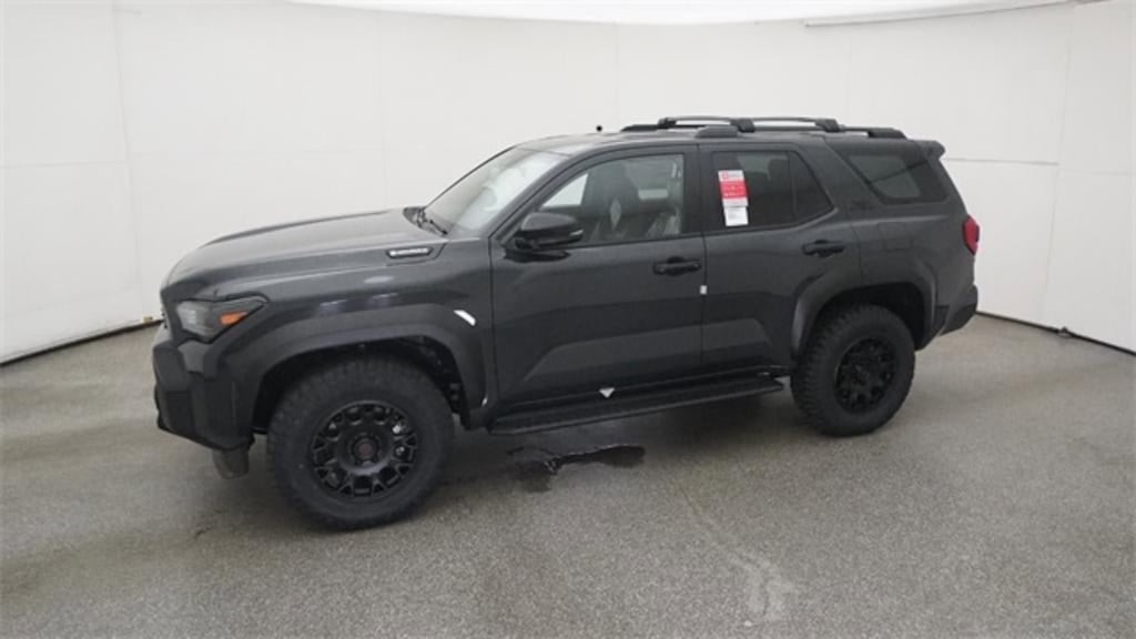 2025 Toyota 4Runner i-FORCE MAX Hybrid TRD Off Road Underground 4-Wheel Disc Brakes, 8 Speakers, ABS brakes, Air Conditioning, Alloy wheels, AM/FM radio: SiriusXM, Anti-whiplash front head restraints, Apple CarPlay/Android Auto, Auto High-beam Headlights, Automatic temperature control, Brake assist, Bumpers: body-color, Driver door bin, Driver vanity mirror, Dual front impact airbags, Dual front side impact airbags, Electronic Stability Control, Emergency communication system: Safety Connect (1-year trial), Exterior Parking Camera Rear, Fabric Seat Trim, Front anti-roll bar, Front Bucket Seats, Front Center Armrest, Front dual zone A/C, Front fog lights, Front reading lights, Front wheel independent suspension, Heated door mirrors, Heated Front Bucket Seats, Illuminated entry, Knee airbag, Leather Shift Knob, Leather steering wheel, Low tire pressure warning, Occupant sensing airbag, Outside temperature display, Overhead airbag, Overhead console, Panic alarm, Passenger door bin, Passenger vanity mirror, Power door mirrors, Power steering, Power windows, Radio: 8" Audio, Rear anti-roll bar, Rear seat center armrest, Rear side impact airbag, Rear window defroster, Rear window wiper, Remote keyless entry, Security system, Speed control, Speed-sensing steering, Split folding rear seat, Spoiler, Steering wheel mounted audio controls, Tachometer, Telescoping steering wheel, Tilt steering wheel, Traction control, Trip computer, Variably intermittent wipers, Wheels: 18" Matte-Black Painted Alloy.
