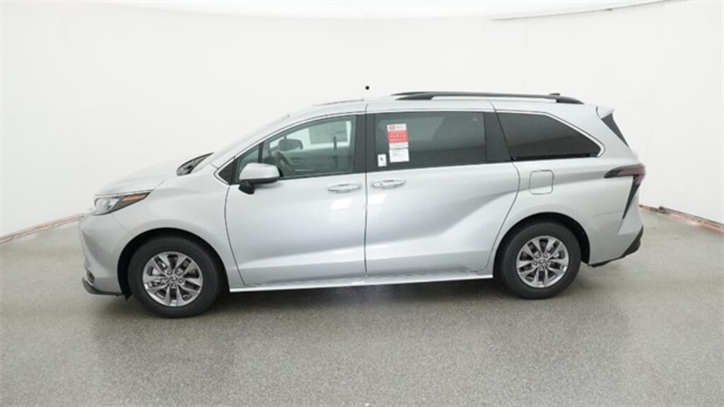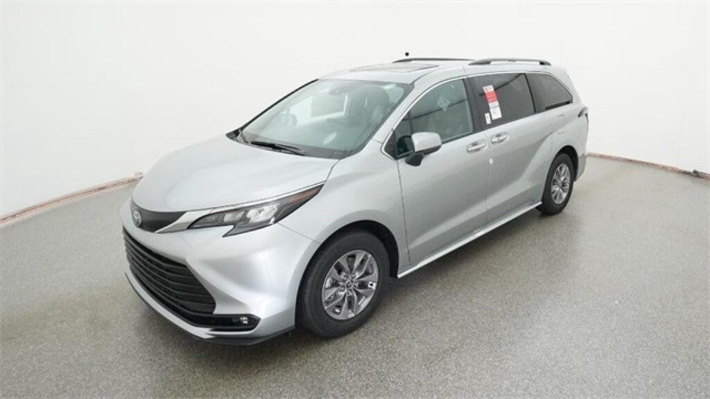 2025 Toyota Sienna XLE 8 Passenger Celestial Silver 17" Alloy Wheels, 3rd row seats: split-bench, 4-Wheel Disc Brakes, 8 Speakers, ABS brakes, Air Conditioning, Alloy wheels, AM/FM radio: SiriusXM, Apple CarPlay/Android Auto, Auto High-beam Headlights, Auto-dimming door mirrors, Auto-dimming Rear-View mirror, Automatic temperature control, Axle Ratio: TBD, Brake assist, Bumpers: body-color, Compass, Delay-off headlights, Driver door bin, Driver vanity mirror, Driver's Seat Mounted Armrest, Dual front impact airbags, Dual front side impact airbags, Electronic Stability Control, Emergency communication system: Safety Connect (3-year trial), Exterior Parking Camera Rear, Four wheel independent suspension, Front anti-roll bar, Front Bucket Seats, Front dual zone A/C, Front fog lights, Front Heated Bucket Seats, Front reading lights, Fully automatic headlights, Garage door transmitter: HomeLink, Heated door mirrors, Heated front seats, Illuminated entry, Knee airbag, Lane Departure Warning System, Leather Shift Knob, Leather steering wheel, Low tire pressure warning, Occupant sensing airbag, Outside temperature display, Overhead airbag, Overhead console, Panic alarm, Passenger door bin, Passenger seat mounted armrest, Passenger vanity mirror, Power door mirrors, Power driver seat, Power Liftgate, Power moonroof, Power passenger seat, Power steering, Power windows, Radio data system, Radio: Toyota Audio Multimedia w/8 Speakers, Rear air conditioning, Rear anti-roll bar, Rear dual zone A/C, Rear reading lights, Rear seat center armrest, Rear side impact airbag, Rear window defroster, Rear window wiper, Reclining 3rd row seat, Remote keyless entry, SofTex Seat Trim, Speed control, Speed-sensing steering, Split folding rear seat, Spoiler, Steering wheel mounted audio controls, Tachometer, Telescoping steering wheel, Tilt steering wheel, Traction control, Trip computer, Turn signal indicator mirrors, Variably intermittent wipers. 8 Passenger