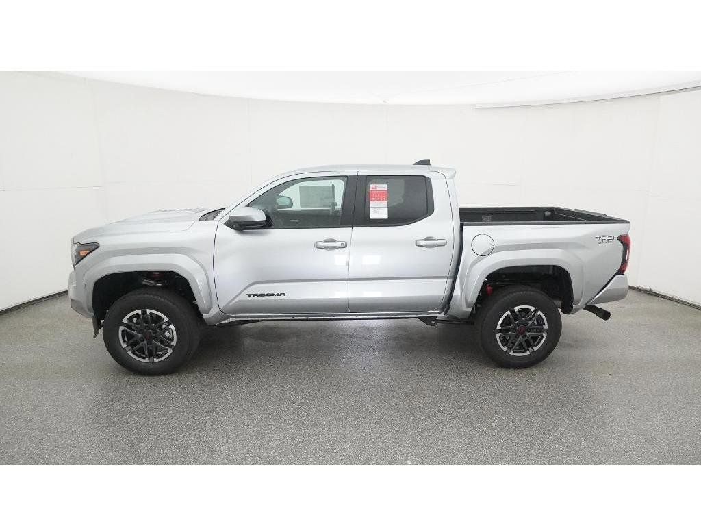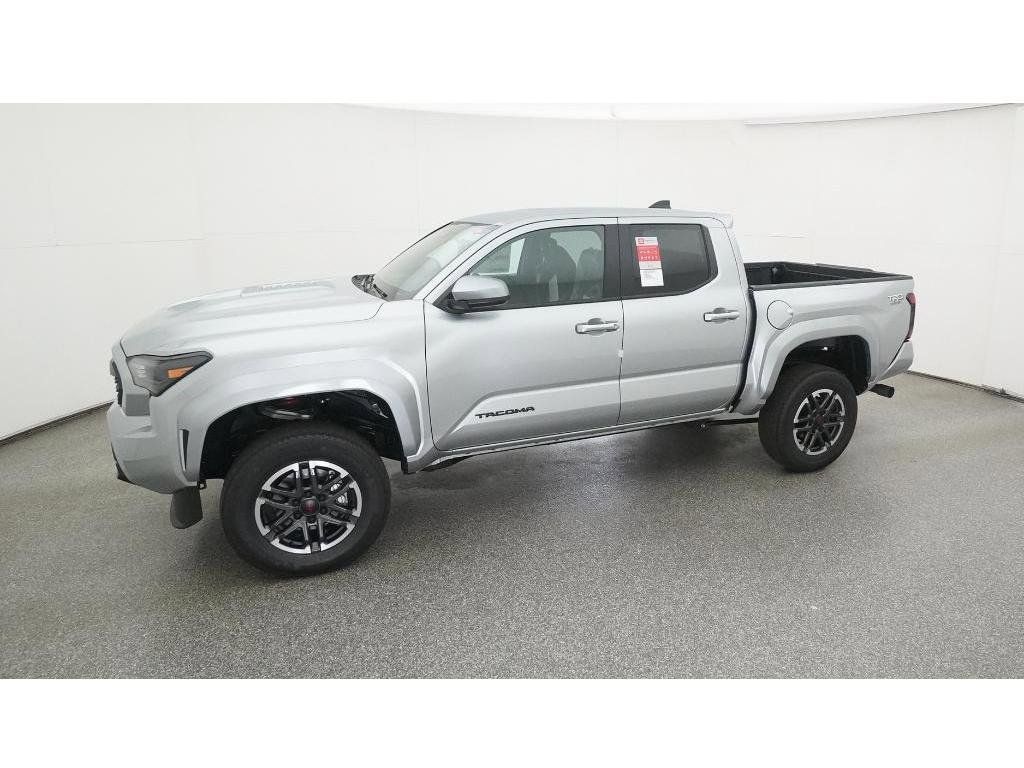2025 Toyota Tacoma TRD Sport Celestial Silver 3.583 Axle Ratio, 4-Wheel Disc Brakes, 6 Speakers, ABS brakes, Air Conditioning, Alloy wheels, AM/FM radio: SiriusXM, Anti-whiplash front head restraints, Apple CarPlay/Android Auto, Auto High-beam Headlights, Auto-dimming Rear-View mirror, Automatic temperature control, Brake assist, Bumpers: body-color, Driver door bin, Driver vanity mirror, Dual front impact airbags, Dual front side impact airbags, Electronic Stability Control, Emergency communication system: Safety Connect (1-year trial), Exterior Parking Camera Rear, Fabric Seat Trim, Four wheel independent suspension, Front anti-roll bar, Front Bucket Seats, Front Center Armrest, Front fog lights, Front reading lights, Fully automatic headlights, Heated door mirrors, Illuminated entry, JBL Premium Audio, Knee airbag, Leather Shift Knob, Leather steering wheel, Low tire pressure warning, Occupant sensing airbag, Outside temperature display, Overhead airbag, Overhead console, Panic alarm, Passenger door bin, Passenger vanity mirror, Power door mirrors, Power steering, Power windows, Radio: 8" Toyota Audio Multimedia, Rear step bumper, Rear window defroster, Remote keyless entry, Security system, SofTex Seat Trim, Speed control, Speed-sensing steering, Split folding rear seat, Steering wheel mounted audio controls, Tachometer, Telescoping steering wheel, Tilt steering wheel, Traction control, Trip computer, Turn signal indicator mirrors, Variably intermittent wipers, Wheels: 18" TRD Sport Alloy.