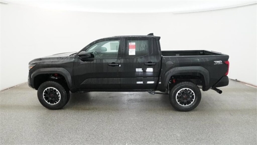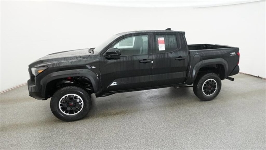 2025 Toyota Tacoma TRD Off-Road Black 3.583 Axle Ratio, 4-Wheel Disc Brakes, 6 Speakers, ABS brakes, Air Conditioning, Alloy wheels, AM/FM radio: SiriusXM, Anti-whiplash front head restraints, Apple CarPlay/Android Auto, Auto High-beam Headlights, Auto-dimming Rear-View mirror, Automatic temperature control, Brake assist, Bumpers: body-color, Driver door bin, Driver vanity mirror, Dual front impact airbags, Dual front side impact airbags, Electronic Stability Control, Emergency communication system: Safety Connect (1-year trial), Exterior Parking Camera Rear, Fabric Seat Trim, Four wheel independent suspension, Front anti-roll bar, Front Bucket Seats, Front Center Armrest, Front fog lights, Front reading lights, Fully automatic headlights, Heated door mirrors, Illuminated entry, JBL Premium Audio, Knee airbag, Leather Shift Knob, Leather steering wheel, Low tire pressure warning, Occupant sensing airbag, Outside temperature display, Overhead airbag, Overhead console, Panic alarm, Passenger door bin, Passenger vanity mirror, Power door mirrors, Power steering, Power windows, Radio: 8" Toyota Audio Multimedia, Rear step bumper, Rear window defroster, Remote keyless entry, Security system, SofTex Seat Trim, Speed control, Speed-sensing steering, Split folding rear seat, Steering wheel mounted audio controls, Tachometer, Telescoping steering wheel, Tilt steering wheel, Traction control, Trip computer, Turn signal indicator mirrors, Variably intermittent wipers, Wheels: 17" TRD Off-Road Alloy.