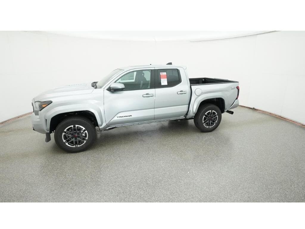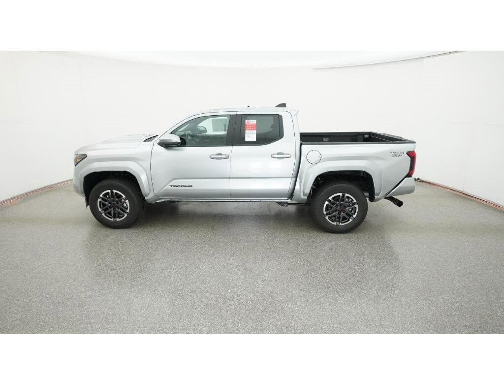 2025 Toyota Tacoma TRD Sport Celestial Silver 3.583 Axle Ratio, 4-Wheel Disc Brakes, 6 Speakers, ABS brakes, Air Conditioning, Alloy wheels, AM/FM radio: SiriusXM, Anti-whiplash front head restraints, Apple CarPlay/Android Auto, Auto High-beam Headlights, Auto-dimming Rear-View mirror, Automatic temperature control, Brake assist, Bumpers: body-color, Driver door bin, Driver vanity mirror, Dual front impact airbags, Dual front side impact airbags, Electronic Stability Control, Emergency communication system: Safety Connect (1-year trial), Exterior Parking Camera Rear, Fabric Seat Trim, Four wheel independent suspension, Front anti-roll bar, Front Bucket Seats, Front Center Armrest, Front fog lights, Front reading lights, Fully automatic headlights, Heated door mirrors, Illuminated entry, Knee airbag, Leather Shift Knob, Leather steering wheel, Low tire pressure warning, Occupant sensing airbag, Outside temperature display, Overhead airbag, Overhead console, Panic alarm, Passenger door bin, Passenger vanity mirror, Power door mirrors, Power steering, Power windows, Radio: 8" Toyota Audio Multimedia, Rear step bumper, Rear window defroster, Remote keyless entry, Security system, Speed control, Speed-sensing steering, Split folding rear seat, Steering wheel mounted audio controls, Tachometer, Telescoping steering wheel, Tilt steering wheel, Traction control, Trip computer, Turn signal indicator mirrors, Variably intermittent wipers, Wheels: 18" TRD Sport Alloy.