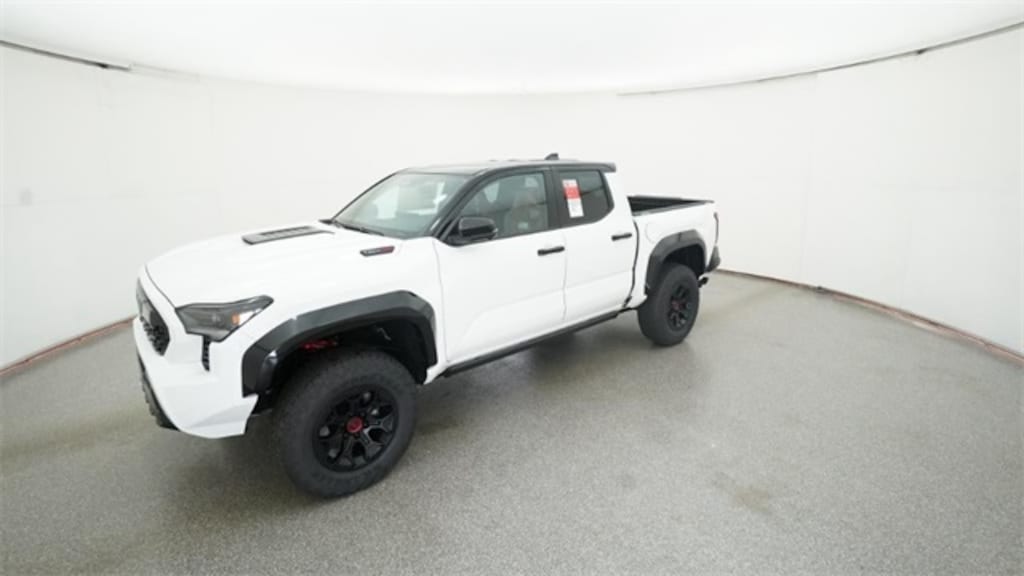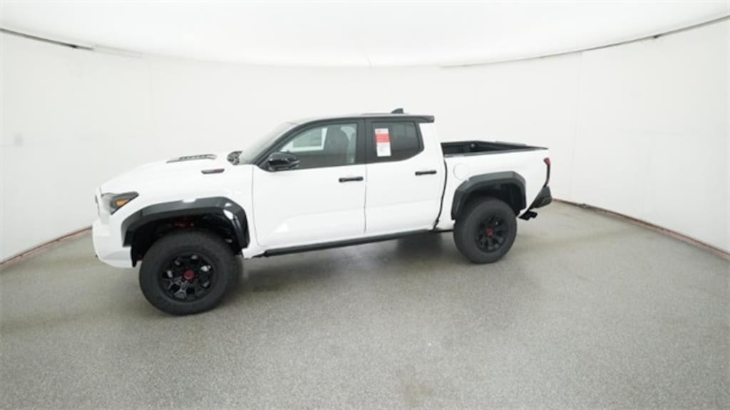 2025 Toyota Tacoma Hybrid TRD Pro Black 3.583 Axle Ratio, 4-Wheel Disc Brakes, 9 Speakers, ABS brakes, Air Conditioning, Alloy wheels, AM/FM radio: SiriusXM, Anti-whiplash front head restraints, Apple CarPlay/Android Auto, Auto High-beam Headlights, Auto-dimming Rear-View mirror, Automatic temperature control, Brake assist, Bumpers: body-color, Driver door bin, Driver vanity mirror, Dual front impact airbags, Dual front side impact airbags, Electronic Stability Control, Emergency communication system: Safety Connect (1-year trial), Exterior Parking Camera Rear, Four wheel independent suspension, Front anti-roll bar, Front Bucket Seats, Front Center Armrest, Front dual zone A/C, Front fog lights, Front reading lights, Fully automatic headlights, Garage door transmitter: HomeLink, Heads-Up Display, Heated door mirrors, Heated front seats, Heated steering wheel, Htd & Vent TRD Pro IsoDynamic Performance Seats, Illuminated entry, JBL Premium Audio, Knee airbag, Leather Shift Knob, Leather steering wheel, Low tire pressure warning, Navigation system: Drive Connect (1 year trial) includes Cloud Navigation with real time traffic and Google POI, Occupant sensing airbag, Outside temperature display, Overhead airbag, Overhead console, Panic alarm, Passenger door bin, Passenger vanity mirror, Power door mirrors, Power driver seat, Power moonroof, Power passenger seat, Power steering, Power windows, Radio: 14" Toyota Audio Multimedia, Rear anti-roll bar, Rear step bumper, Rear window defroster, Remote keyless entry, Security system, SofTex Seat Trim, Speed control, Speed-sensing steering, Split folding rear seat, Steering wheel mounted audio controls, Tachometer, Telescoping steering wheel, Tilt steering wheel, Traction control, Trip computer, Turn signal indicator mirrors, Variably intermittent wipers, Ventilated front seats, Wheels: 18" Black TRD Pro Alloy.