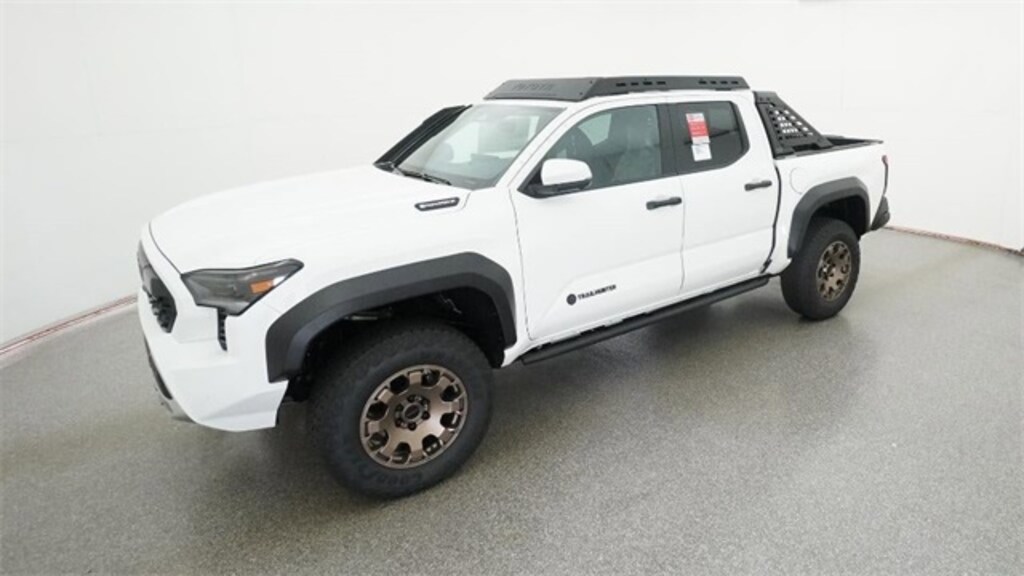 2025 Toyota Tacoma Hybrid Trailhunter Ice 3.583 Axle Ratio, 4-Wheel Disc Brakes, 9 Speakers, ABS brakes, Air Conditioning, Alloy wheels, AM/FM radio: SiriusXM, Anti-whiplash front head restraints, Apple CarPlay/Android Auto, Auto High-beam Headlights, Auto-dimming Rear-View mirror, Automatic temperature control, Brake assist, Bumpers: body-color, Driver door bin, Driver vanity mirror, Dual front impact airbags, Dual front side impact airbags, Electronic Stability Control, Emergency communication system: Safety Connect (1-year trial), Exterior Parking Camera Rear, Four wheel independent suspension, Front anti-roll bar, Front Bucket Seats, Front Center Armrest, Front dual zone A/C, Front fog lights, Front reading lights, Fully automatic headlights, Garage door transmitter: HomeLink, Heads-Up Display, Heated & Ventilated Front Bucket Seats, Heated door mirrors, Heated front seats, Heated steering wheel, Illuminated entry, JBL Premium Audio, Knee airbag, Leather Shift Knob, Leather steering wheel, Low tire pressure warning, Navigation system: Drive Connect (1 year trial) includes Cloud Navigation with real time traffic and Google POI, Occupant sensing airbag, Outside temperature display, Overhead airbag, Overhead console, Panic alarm, Passenger door bin, Passenger vanity mirror, Power door mirrors, Power driver seat, Power passenger seat, Power steering, Power windows, Radio: 14" Toyota Audio Multimedia, Rear anti-roll bar, Rear step bumper, Rear window defroster, Remote keyless entry, Security system, SofTex Seat Trim, Speed control, Speed-sensing steering, Split folding rear seat, Steering wheel mounted audio controls, Tachometer, Telescoping steering wheel, Tilt steering wheel, Traction control, Trip computer, Turn signal indicator mirrors, Variably intermittent wipers, Ventilated front seats, Wheels: 18" Bronze-Finished Trailhunter Alloy.