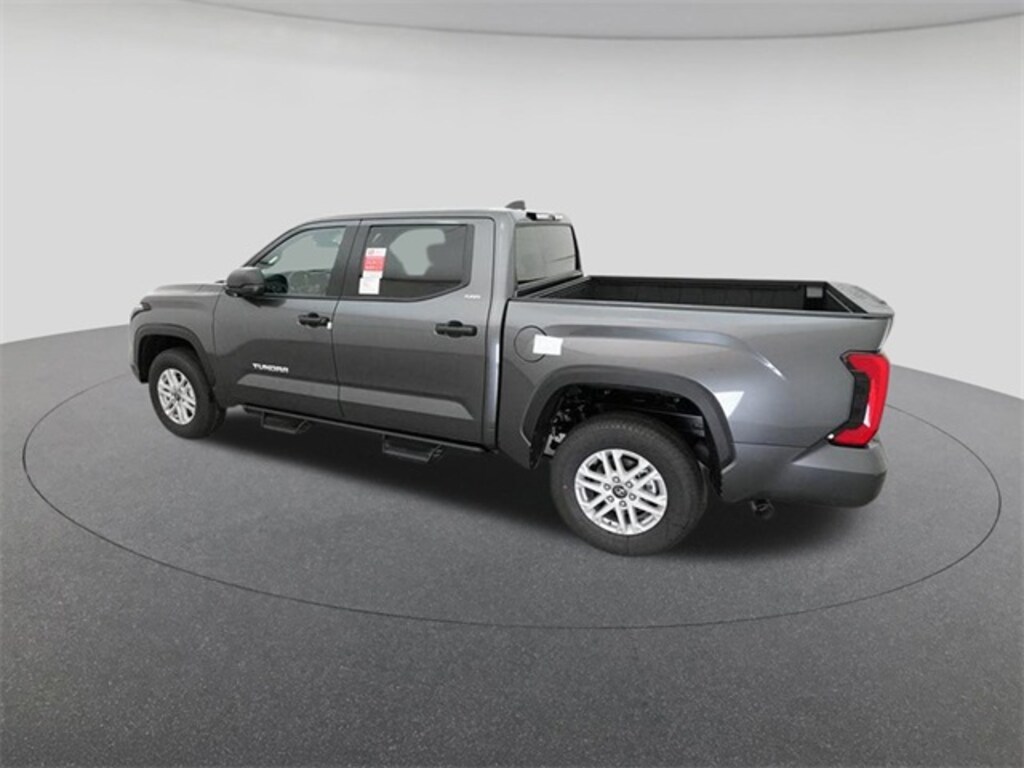 2025 Toyota Tundra SR5 Magnetic Gray 18" Alloy Wheels, 3.31 Axle Ratio, 4-Wheel Disc Brakes, 9 Speakers, ABS brakes, Air Conditioning, Alloy wheels, AM/FM radio: SiriusXM, Apple CarPlay/Android Auto, Auto High-beam Headlights, Automatic temperature control, Brake assist, Bumpers: body-color, Delay-off headlights, Driver door bin, Driver vanity mirror, Dual front impact airbags, Dual front side impact airbags, Electronic Stability Control, Emergency communication system: Safety Connect (10-year trial), Exterior Parking Camera Rear, Fabric Seat Trim (FB), Front anti-roll bar, Front Bucket Seats, Front Center Armrest, Front fog lights, Front reading lights, Front wheel independent suspension, Fully automatic headlights, Heated door mirrors, Illuminated entry, Knee airbag, Low tire pressure warning, Occupant sensing airbag, Outside temperature display, Overhead airbag, Overhead console, Panic alarm, Passenger door bin, Passenger vanity mirror, Power door mirrors, Power driver seat, Power steering, Power windows, Radio data system, Radio: Audio Multimedia System, Rear reading lights, Rear step bumper, Rear window defroster, Remote keyless entry, Safety Connect, Security system, Speed control, Speed-sensing steering, Split folding rear seat, Steering wheel mounted audio controls, Tachometer, Telescoping steering wheel, Tilt steering wheel, Traction control, Trip computer, Variably intermittent wipers, Voltmeter.