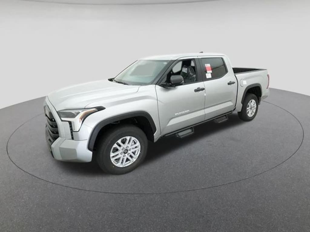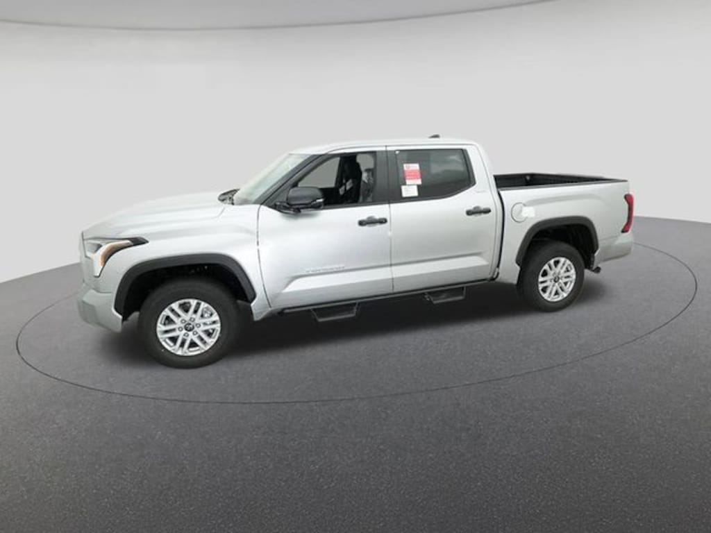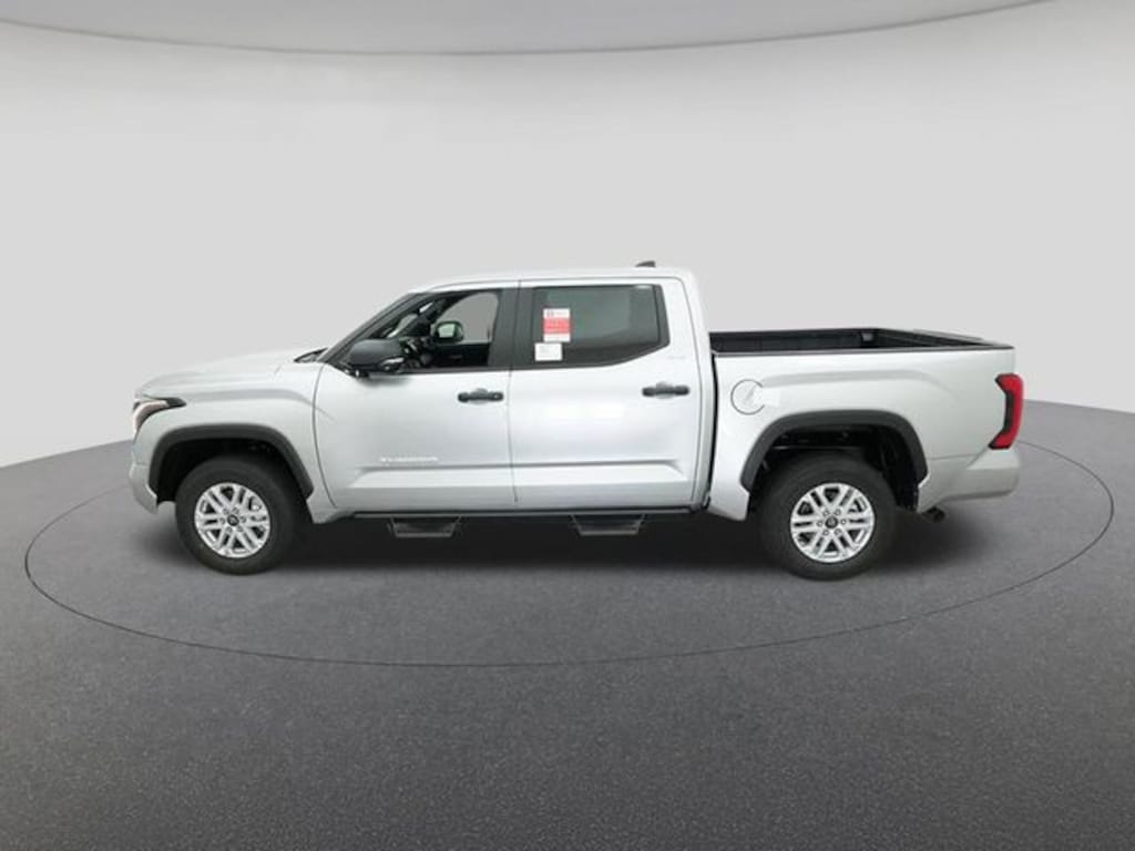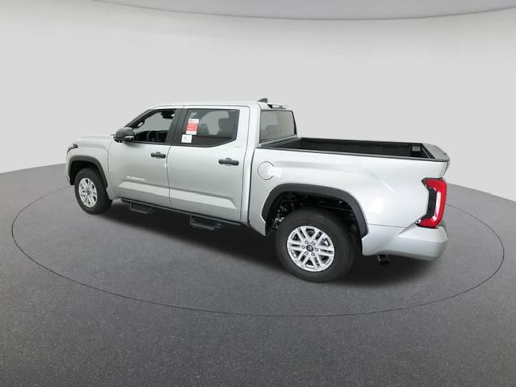 2025 Toyota Tundra SR5 Celestial Silver 18" Alloy Wheels, 3.31 Axle Ratio, 4-Wheel Disc Brakes, 9 Speakers, ABS brakes, Air Conditioning, Alloy wheels, AM/FM radio: SiriusXM, Apple CarPlay/Android Auto, Auto High-beam Headlights, Automatic temperature control, Brake assist, Bumpers: body-color, Delay-off headlights, Driver door bin, Driver vanity mirror, Dual front impact airbags, Dual front side impact airbags, Electronic Stability Control, Emergency communication system: Safety Connect (10-year trial), Exterior Parking Camera Rear, Fabric Seat Trim (FB), Front anti-roll bar, Front Bucket Seats, Front Center Armrest, Front fog lights, Front reading lights, Front wheel independent suspension, Fully automatic headlights, Heated door mirrors, Illuminated entry, Knee airbag, Low tire pressure warning, Occupant sensing airbag, Outside temperature display, Overhead airbag, Overhead console, Panic alarm, Passenger door bin, Passenger vanity mirror, Power door mirrors, Power driver seat, Power steering, Power windows, Radio data system, Radio: Audio Multimedia System, Rear reading lights, Rear step bumper, Rear window defroster, Remote keyless entry, Safety Connect, Security system, Speed control, Speed-sensing steering, Split folding rear seat, Steering wheel mounted audio controls, Tachometer, Telescoping steering wheel, Tilt steering wheel, Traction control, Trip computer, Variably intermittent wipers, Voltmeter.
