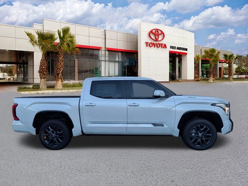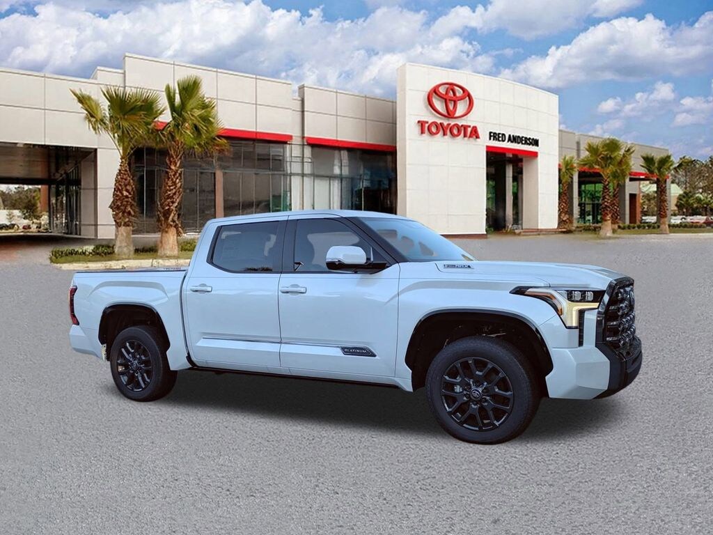 2025 Toyota Tundra Hybrid Platinum Wind Chill Pearl $5,000 off MSRP! This quality vehicle qualifies for our " Fred Anderson Family Plan" which includes our PEACE OF MIND 3-DAY GUARANTEE*LIFE TIME CAR WASHES*SERVICE LOANERS*LIFE TIME OIL CHANGES and MUCH MORE! Be sure to ask our sales associate about all the great benefits of doing business with us. ============> Many Vehicles come with Great options like -->Driver Assist Package Bird'sEye View Camera1 with Perimeter Scan, Intelligent Clearance Sonar with Rear Cross-Traffic Braking (RCTB) Adaptive Headlights LED headlights with level control and auto on/off feature, Navigation, JBL®6w/Clari-Fi and EntuneTM 3.0 App Suite, compatible wireless smartphone charging, Power tilt/slide moonroof Full-Speed Range Dynamic Radar Cruise Control (DRCC), Leather-trimmed multi-stage heated front seats , EntuneTM 3.04 Audio Plus with App Suite 8-in. Touchscreen, auxiliary port, USB media port,two USB charge ports, advanced voice recognition, hands-free phone capability and music streaming via Bluetooth®wireless technology, Scout® GPS Link compatible ,Eyes Free,Apple CarPlay SiriusXM® Satellite Radio Wi-Fi Connect ,Smart Key front doors and trunk with Push Button Start, remote keyless entry system and remote illuminated entry. Toyota Safety SenseTM P (TSS-P), Pre-Collision System with Pedestrian Detection (PCS w/PD), Lane Departure Alert with Steering Assist (LDA w/SA),Automatic High Beams (AHB) and Full-Speed Range Dynamic Radar Cruise,Control (DRCC)S, Blind Spot Monitor (BSM) with Rear Cross-Traffic Alert (RCTA) 3.4L V6.