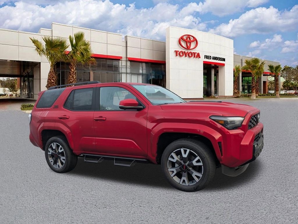 2026 Toyota 4Runner TRD Sport Premium Supersonic Red This quality vehicle qualifies for our " Fred Anderson Family Plan" which includes our PEACE OF MIND 3-DAY GUARANTEE*LIFE TIME CAR WASHES*SERVICE LOANERS*LIFE TIME OIL CHANGES and MUCH MORE! Be sure to ask our sales associate about all the great benefits of doing business with us. ============> Many Vehicles come with Great options like -->Driver Assist Package Bird'sEye View Camera1 with Perimeter Scan, Intelligent Clearance Sonar with Rear Cross-Traffic Braking (RCTB) Adaptive Headlights LED headlights with level control and auto on/off feature, Navigation, JBL®6w/Clari-Fi and EntuneTM 3.0 App Suite, compatible wireless smartphone charging, Power tilt/slide moonroof Full-Speed Range Dynamic Radar Cruise Control (DRCC), Leather-trimmed multi-stage heated front seats , EntuneTM 3.04 Audio Plus with App Suite 8-in. Touchscreen, auxiliary port, USB media port,two USB charge ports, advanced voice recognition, hands-free phone capability and music streaming via Bluetooth®wireless technology, Scout® GPS Link compatible ,Eyes Free,Apple CarPlay SiriusXM® Satellite Radio Wi-Fi Connect ,Smart Key front doors and trunk with Push Button Start, remote keyless entry system and remote illuminated entry. Toyota Safety SenseTM P (TSS-P), Pre-Collision System with Pedestrian Detection (PCS w/PD), Lane Departure Alert with Steering Assist (LDA w/SA),Automatic High Beams (AHB) and Full-Speed Range Dynamic Radar Cruise,Control (DRCC)S, Blind Spot Monitor (BSM) with Rear Cross-Traffic Alert (RCTA) 4WD, Black Artificial Leather.