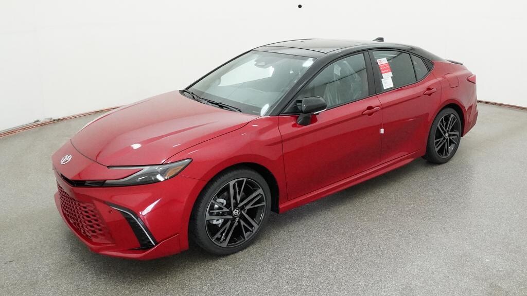 2026 Toyota Camry XSE Red 4-Wheel Disc Brakes, 6 Speakers, ABS brakes, Air Conditioning, Alloy wheels, AM/FM radio: SiriusXM, Apple CarPlay/Android Auto, Auto High-beam Headlights, Auto-dimming Rear-View mirror, Automatic temperature control, Brake assist, Bumpers: body-color, Delay-off headlights, Driver door bin, Driver vanity mirror, Dual front impact airbags, Dual front side impact airbags, Electronic Stability Control, Emergency communication system: Safety Connect (5-year trial), Exterior Parking Camera Rear, Four wheel independent suspension, Front anti-roll bar, Front Bucket Seats, Front Center Armrest, Front dual zone A/C, Front reading lights, Fully automatic headlights, Garage door transmitter: HomeLink, Heated door mirrors, Heated Front Seats, Heated front seats, Heated steering wheel, Illuminated entry, Knee airbag, Leather Seat Trim, Leather Shift Knob, Leather steering wheel, Low tire pressure warning, Navigation system: Drive Connect (1 year trial) includes Cloud Navigation with real time traffic and Google POI, Occupant sensing airbag, Outside temperature display, Overhead airbag, Overhead console, Panic alarm, Passenger door bin, Passenger vanity mirror, Power door mirrors, Power driver seat, Power passenger seat, Power steering, Power windows, Radio data system, Radio: 12.3" Toyota Multimedia Audio, Rear anti-roll bar, Rear reading lights, Rear seat center armrest, Rear window defroster, Remote keyless entry, Security system, Speed control, Speed-sensing steering, Split folding rear seat, Spoiler, Steering wheel mounted audio controls, Telescoping steering wheel, Tilt steering wheel, Traction control, Trip computer, Turn signal indicator mirrors, Variably intermittent wipers, Wheels: 19" Smoked Gray and Black-Finished Alloy.
