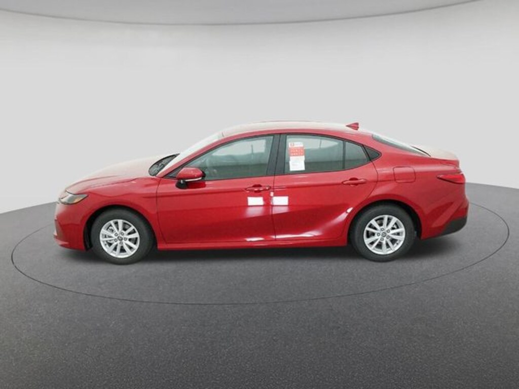 2026 Toyota Camry LE Red 4-Wheel Disc Brakes, 6 Speakers, ABS brakes, Air Conditioning, Alloy wheels, AM/FM radio: SiriusXM, Apple CarPlay/Android Auto, Auto High-beam Headlights, Automatic temperature control, Brake assist, Bumpers: body-color, Delay-off headlights, Driver door bin, Driver vanity mirror, Dual front impact airbags, Dual front side impact airbags, Electronic Stability Control, Emergency communication system: Safety Connect (5-year trial), Exterior Parking Camera Rear, Fabric Seat Trim, Four wheel independent suspension, Front anti-roll bar, Front Bucket Seats, Front Center Armrest, Front dual zone A/C, Front reading lights, Front Seats, Fully automatic headlights, Heated door mirrors, Heated Front Seats, Illuminated entry, Knee airbag, Low tire pressure warning, Occupant sensing airbag, Outside temperature display, Overhead airbag, Overhead console, Panic alarm, Passenger door bin, Passenger vanity mirror, Power door mirrors, Power steering, Power windows, Radio data system, Radio: 8" Toyota Audio Multimedia, Rear anti-roll bar, Rear seat center armrest, Rear window defroster, Remote keyless entry, Security system, Speed control, Speed-sensing steering, Split folding rear seat, Steering wheel mounted audio controls, Telescoping steering wheel, Tilt steering wheel, Traction control, Trip computer, Turn signal indicator mirrors, Variably intermittent wipers, Wheels: 16" 10-Spoke Silver-Painted Alloy.