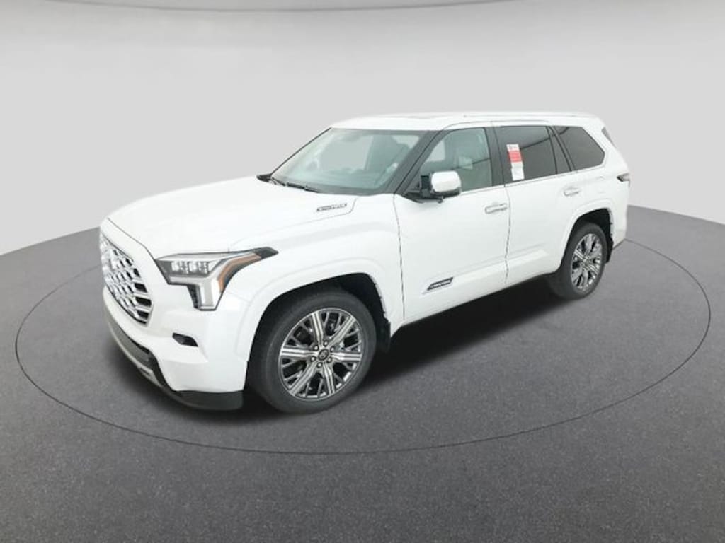 2026 Toyota Sequoia Capstone Pearl 3rd row seats: split-bench, 4-Wheel Disc Brakes, ABS brakes, Air Conditioning, Alloy wheels, AM/FM radio: SiriusXM, Anti-whiplash front head restraints, Apple CarPlay/Android Auto, Auto High-beam Headlights, Auto-dimming door mirrors, Auto-dimming Rear-View mirror, Automatic temperature control, Brake assist, Bumpers: body-color, Delay-off headlights, Driver door bin, Driver vanity mirror, Dual front impact airbags, Dual front side impact airbags, Electronic Stability Control, Emergency communication system: Safety Connect (10-year trial), Exterior Parking Camera Rear, Front anti-roll bar, Front Bucket Seats, Front Center Armrest w/Storage, Front dual zone A/C, Front fog lights, Front reading lights, Front wheel independent suspension, Fully automatic headlights, Headlight cleaning, Heated door mirrors, Heated front seats, Illuminated entry, Knee airbag, Leather steering wheel, Low tire pressure warning, Occupant sensing airbag, Outside temperature display, Overhead airbag, Overhead console, Panic alarm, Passenger door bin, Passenger vanity mirror, Power door mirrors, Power driver seat, Power moonroof, Power passenger seat, Power steering, Power windows, Rear air conditioning, Rear reading lights, Rear seat center armrest, Rear window defroster, Rear window wiper, Reclining 3rd row seat, Remote keyless entry, Security system, Speed control, Speed-sensing steering, Split folding rear seat, Spoiler, Steering wheel mounted audio controls, Tachometer, Telescoping steering wheel, Tilt steering wheel, Traction control, Trip computer, Turn signal indicator mirrors, Variably intermittent wipers, Voltmeter.