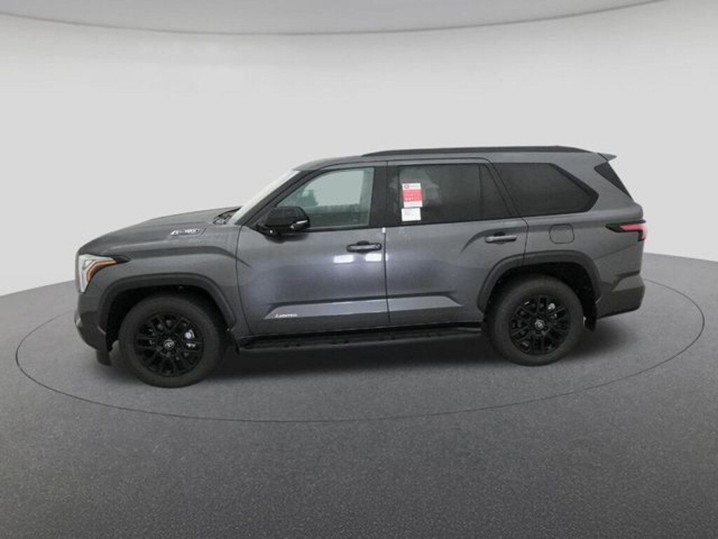 2026 Toyota Sequoia Limited Magnetic Gray 3rd row seats: split-bench, 4-Wheel Disc Brakes, 8 Speakers, ABS brakes, Air Conditioning, Alloy wheels, AM/FM radio: SiriusXM, Anti-whiplash front head restraints, Apple CarPlay/Android Auto, Auto High-beam Headlights, Auto-dimming door mirrors, Auto-dimming Rear-View mirror, Automatic temperature control, Brake assist, Bumpers: body-color, Delay-off headlights, Driver door bin, Driver vanity mirror, Dual front impact airbags, Dual front side impact airbags, Electronic Stability Control, Emergency communication system: Safety Connect (10-year trial), Exterior Parking Camera Rear, Front anti-roll bar, Front Bucket Seats, Front Center Armrest w/Storage, Front dual zone A/C, Front fog lights, Front reading lights, Front wheel independent suspension, Fully automatic headlights, Garage door transmitter: HomeLink, Headlight cleaning, Heated and Ventilated Front Seats, Heated door mirrors, Heated front seats, Heated steering wheel, Illuminated entry, Knee airbag, Leather Seat Trim, Leather Shift Knob, Leather steering wheel, Low tire pressure warning, Memory seat, Navigation system: Drive Connect (1 year trial) includes Cloud Navigation with real time traffic and Google POI, Occupant sensing airbag, Outside temperature display, Overhead airbag, Overhead console, Panic alarm, Passenger door bin, Passenger vanity mirror, Power door mirrors, Power driver seat, Power Liftgate, Power moonroof, Power passenger seat, Power steering, Power windows, Radio: 14" Toyota Audio Multimedia, Rear air conditioning, Rear reading lights, Rear seat center armrest, Rear window defroster, Rear window wiper, Reclining 3rd row seat, Remote keyless entry, Security system, Speed control, Speed-sensing steering, Split folding rear seat, Spoiler, Steering wheel mounted audio controls, Tachometer, Telescoping steering wheel, Tilt steering wheel, Traction control, Trip computer, Turn signal indicator mirrors, Variably intermittent wipers, Ventilated front seats, Voltmeter, Wheels: 20" Machined-Finish Alloy.