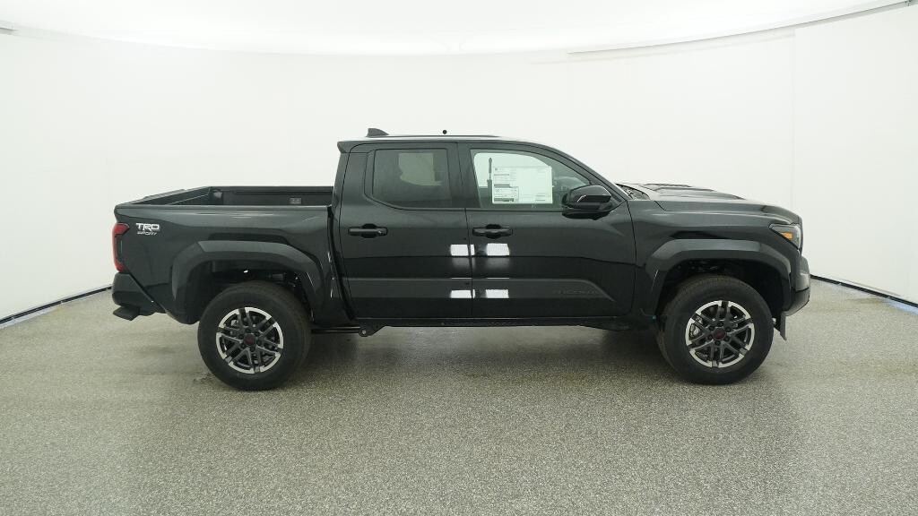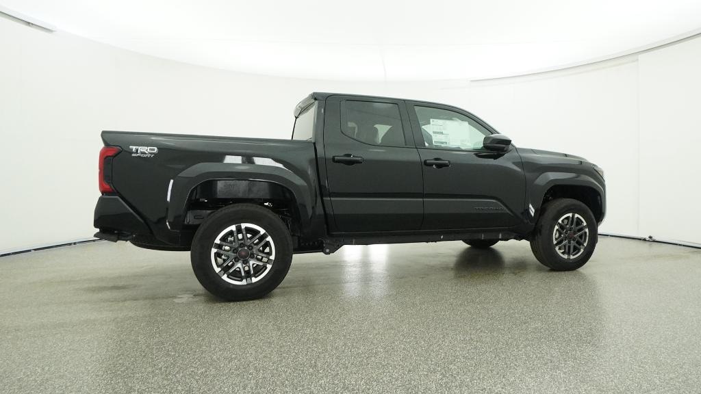 2026 Toyota Tacoma TRD Sport Black 3.583 Axle Ratio, 4-Wheel Disc Brakes, 6 Speakers, ABS brakes, Air Conditioning, Alloy wheels, AM/FM radio: SiriusXM, Anti-whiplash front head restraints, Apple CarPlay/Android Auto, Auto High-beam Headlights, Auto-dimming Rear-View mirror, Automatic temperature control, Brake assist, Bumpers: body-color, Driver door bin, Driver vanity mirror, Dual front impact airbags, Dual front side impact airbags, Electronic Stability Control, Emergency communication system: Safety Connect (up to 10-year trial subscription), Exterior Parking Camera Rear, Fabric Seat Trim, Four wheel independent suspension, Front anti-roll bar, Front Bucket Seats, Front Center Armrest, Front fog lights, Front reading lights, Fully automatic headlights, Heated door mirrors, Illuminated entry, Knee airbag, Leather Shift Knob, Leather steering wheel, Low tire pressure warning, Occupant sensing airbag, Outside temperature display, Overhead airbag, Overhead console, Panic alarm, Passenger door bin, Passenger vanity mirror, Power door mirrors, Power steering, Power windows, Radio: 8" Toyota Audio Multimedia, Rear step bumper, Rear window defroster, Remote keyless entry, Security system, Speed control, Speed-sensing steering, Split folding rear seat, Steering wheel mounted audio controls, Tachometer, Telescoping steering wheel, Tilt steering wheel, Traction control, Trip computer, Turn signal indicator mirrors, Variably intermittent wipers, Wheels: 18" TRD Sport Alloy.