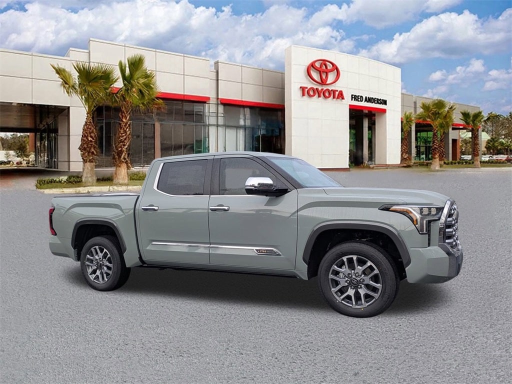 2026 Toyota Tundra 1794 Lunar Rock $2,000 off MSRP! This quality vehicle qualifies for our " Fred Anderson Family Plan" which includes our PEACE OF MIND 3-DAY GUARANTEE*LIFE TIME CAR WASHES*SERVICE LOANERS*LIFE TIME OIL CHANGES and MUCH MORE! Be sure to ask our sales associate about all the great benefits of doing business with us. ============> Many Vehicles come with Great options like -->Driver Assist Package Bird'sEye View Camera1 with Perimeter Scan, Intelligent Clearance Sonar with Rear Cross-Traffic Braking (RCTB) Adaptive Headlights LED headlights with level control and auto on/off feature, Navigation, JBL®6w/Clari-Fi and EntuneTM 3.0 App Suite, compatible wireless smartphone charging, Power tilt/slide moonroof Full-Speed Range Dynamic Radar Cruise Control (DRCC), Leather-trimmed multi-stage heated front seats , EntuneTM 3.04 Audio Plus with App Suite 8-in. Touchscreen, auxiliary port, USB media port,two USB charge ports, advanced voice recognition, hands-free phone capability and music streaming via Bluetooth®wireless technology, Scout® GPS Link compatible ,Eyes Free,Apple CarPlay SiriusXM® Satellite Radio Wi-Fi Connect ,Smart Key front doors and trunk with Push Button Start, remote keyless entry system and remote illuminated entry. Toyota Safety SenseTM P (TSS-P), Pre-Collision System with Pedestrian Detection (PCS w/PD), Lane Departure Alert with Steering Assist (LDA w/SA),Automatic High Beams (AHB) and Full-Speed Range Dynamic Radar Cruise,Control (DRCC)S, Blind Spot Monitor (BSM) with Rear Cross-Traffic Alert (RCTA) 4WD, Saddle Tan Leat Leather.
