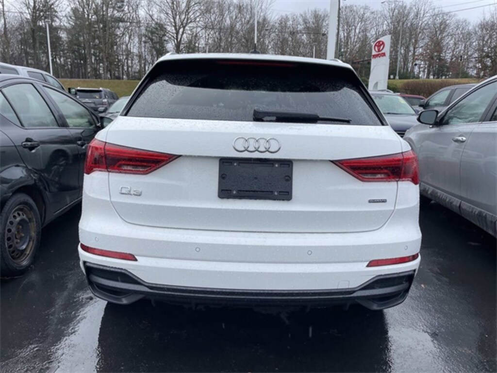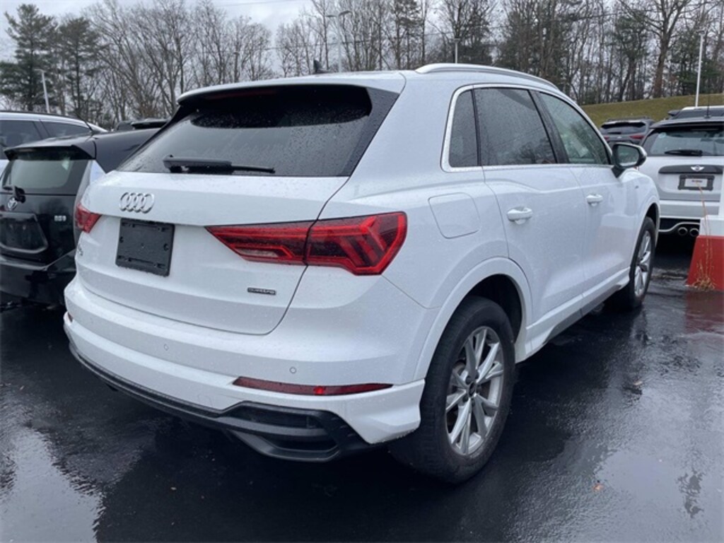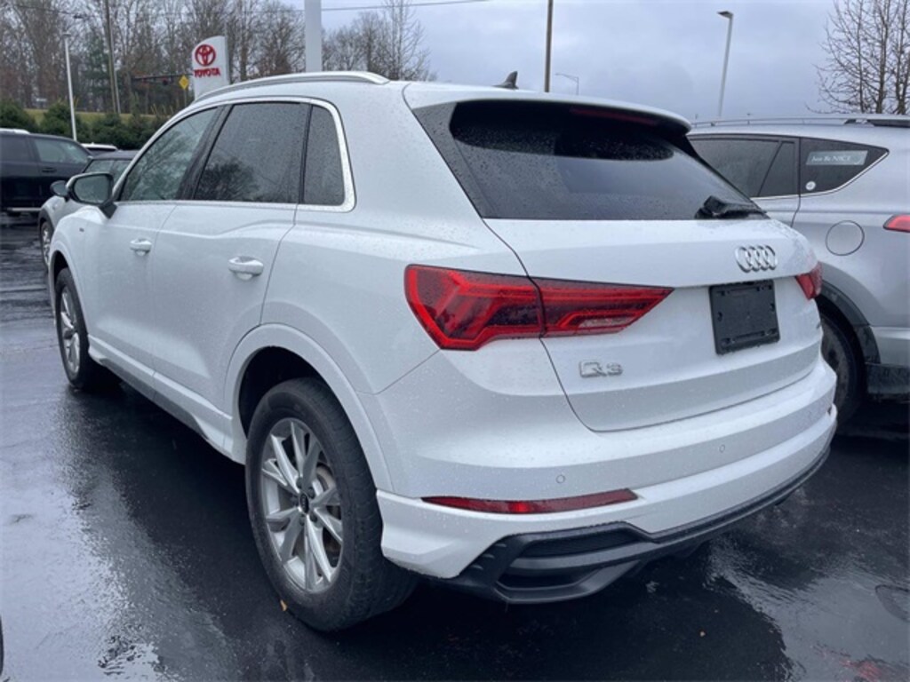 Recent Arrival! CARFAX One-Owner. Clean CARFAX. 2022 Audi Q3 Premium S Line quattro Ibis White 10 Speakers, 3.533 Axle Ratio, 4-Wheel Disc Brakes, ABS brakes, Air Conditioning, Alloy wheels, AM/FM radio, Audi smartphone interface (Apple CarPlay/Android Auto), Auto High-beam Headlights, Automatic temperature control, Brake assist, Bumpers: body-color, Delay-off headlights, Driver door bin, Driver vanity mirror, Dual front impact airbags, Dual front side impact airbags, Electronic Stability Control, Emergency communication system: Audi connect CARE, Exterior Parking Camera Rear, Four wheel independent suspension, Front anti-roll bar, Front Bucket Seats, Front Center Armrest, Front dual zone A/C, Front fog lights, Front reading lights, Fully automatic headlights, Heated door mirrors, Heated Front Bucket Seats, Heated front seats, Illuminated entry, Knee airbag, Leather Seating Surfaces, Leather Shift Knob, Leather steering wheel, Low tire pressure warning, Occupant sensing airbag, Outside temperature display, Overhead airbag, Overhead console, Panic alarm, Passenger door bin, Passenger vanity mirror, Power door mirrors, Power driver seat, Power Liftgate, Power moonroof: Panoramic, Power passenger seat, Power steering, Power windows, Radio data system, Radio: Audi Sound System, Rain sensing wipers, Rear air conditioning, Rear anti-roll bar, Rear fog lights, Rear reading lights, Rear seat center armrest, Rear window defroster, Rear window wiper, Remote keyless entry, Speed control, Speed-sensing steering, Split folding rear seat, Spoiler, Steering wheel mounted audio controls, Tachometer, Telescoping steering wheel, Tilt steering wheel, Traction control, Trip computer, Turn signal indicator mirrors, Variably intermittent wipers, Wheels: 18" 5-V-Spoke-S Design.
