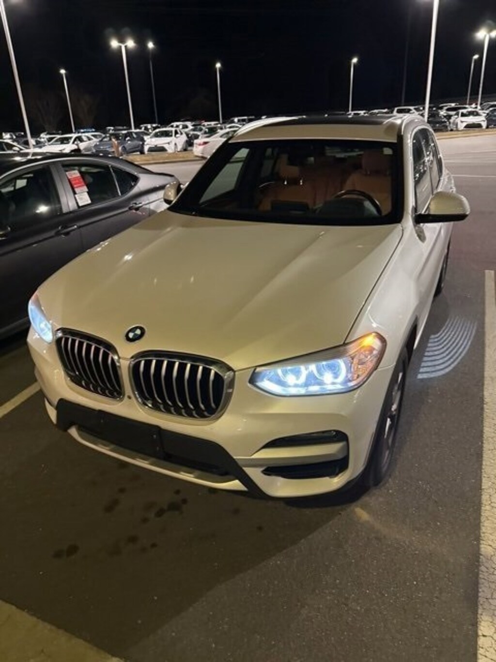 Recent Arrival! 2021 BMW X3 sDrive30i Mineral White Metallic 12 Speakers, 3.385 Axle Ratio, 4-Wheel Disc Brakes, ABS brakes, Active Park Distance Control, Air Conditioning, Alloy wheels, AM/FM radio: SiriusXM, Ambient Lighting, Apple CarPlay & Android Auto Compatibility, Apple CarPlay Compatibility, Auto-dimming door mirrors, Auto-dimming Rear-View mirror, Automatic temperature control, BMW Assist eCall, BMW TeleServices, Brake assist, Bumpers: body-color, Comfort Access Keyless Entry, Connected Package Plus, Connected Package Pro, ConnectedDrive Services, Delay-off headlights, Driver door bin, Driver vanity mirror, Dual front impact airbags, Dual front side impact airbags, Electronic Stability Control, Emergency communication system: BMW Assist eCall, Exterior Parking Camera Rear, Four wheel independent suspension, Front anti-roll bar, Front Bucket Seats, Front Center Armrest, Front dual zone A/C, Front fog lights, Front reading lights, Fully automatic headlights, Garage door transmitter, Genuine wood dashboard insert, Genuine wood door panel insert, Head-Up Display, Heated door mirrors, Heated Front Seats, Heated Steering Wheel, Hi-Fi Sound System, Illuminated entry, Knee airbag, Live Cockpit Pro w/Navigation, Low tire pressure warning, Lumbar Support, Memory seat, Navigation, Navigation System, Occupant sensing airbag, Outside temperature display, Overhead airbag, Panic alarm, Panoramic Moonroof, Parking Assistance Package, Parking Assistant Plus, Passenger door bin, Passenger vanity mirror, Power door mirrors, Power driver seat, Power Front Seats, Power Liftgate, Power passenger seat, Power steering, Power windows, Premium Package, Radio Control US, Radio data system, Radio: AM/FM Stereo w/HD, Rain sensing wipers, Rear air conditioning, Rear anti-roll bar, Rear reading lights, Rear seat center armrest, Rear window defroster, Rear window wiper, Rear-View Camera, Remote keyless entry, Roof rack: rails only, Security system, SensaTec Upholstery, SiriusXM Satellite Radio, SiriusXM w/360L, Speed control, Speed-sensing steering, Speed-Sensitive Wipers, Split folding rear seat, Spoiler, Sport Bucket Seats, Sport steering wheel, Steering wheel mounted audio controls, Surround View w/3D View, Tachometer, Telescoping steering wheel, Tilt steering wheel, Traction control, Trailer Hitch, Trip computer, Turn signal indicator mirrors, Variably intermittent wipers, Wheels: 18" x 7.0" Y-Spoke (Style 688), Wheels: 19" x 7.5" Y-Spoke (Style 693), WiFi Hotspot.