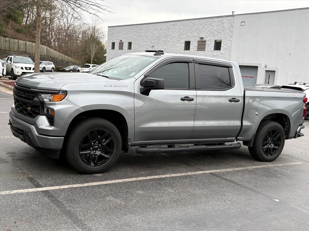 CARFAX One-Owner. **Available at Fred Anderson Nissan of Asheville. Call us today at 828-252-0000**, FULLY SERVICED!, Back Up Camera, Custom Convenience Package, Custom Value Package, Electric Rear-Window Defogger, EZ Lift Power Lock & Release Tailgate, Fully automatic headlights, Hitch Guidance, LED Cargo Area Lighting, Remote Vehicle Starter System, Theft Deterrent System (Unauthorized Entry), Trailering Package, Wheels: 20" x 9" High Gloss Black Painted Alum. Recent Arrival! Clean CARFAX. 2024 Chevrolet Silverado 1500 Custom Sterling Gray Metallic