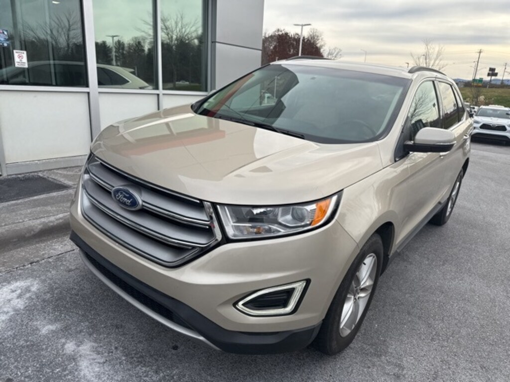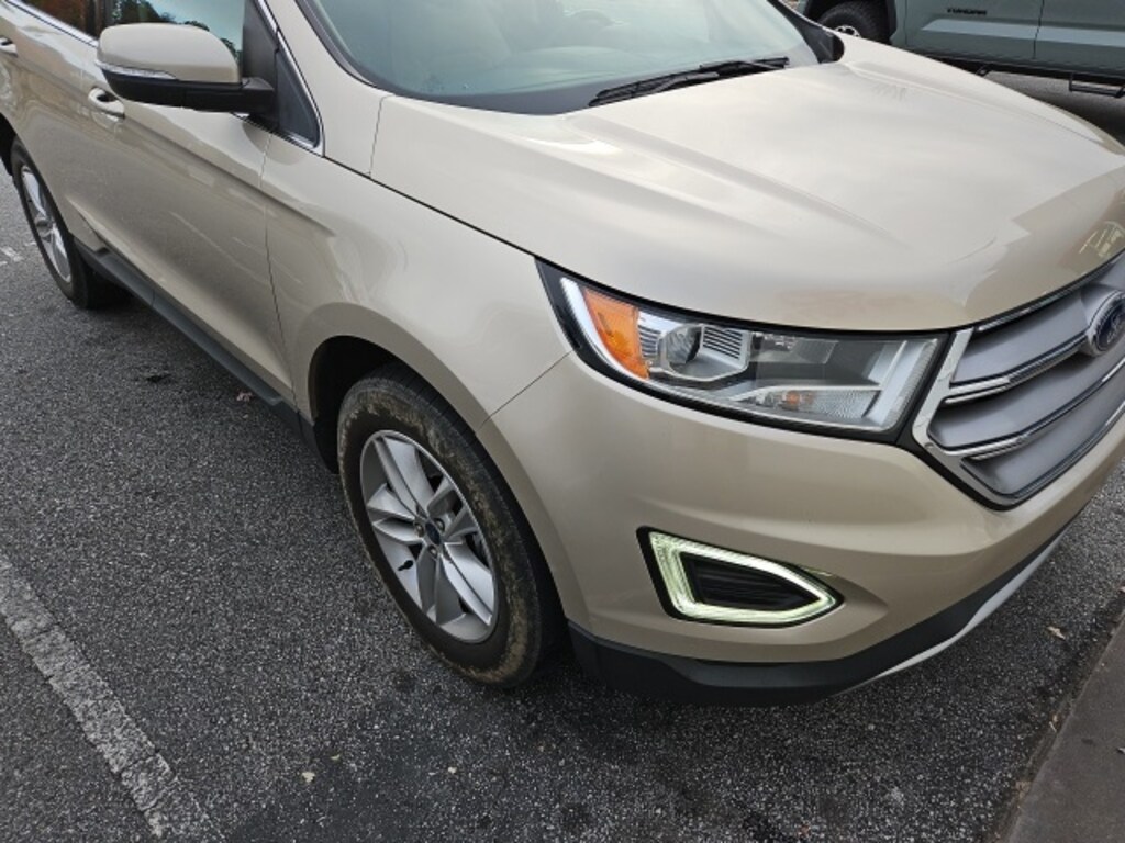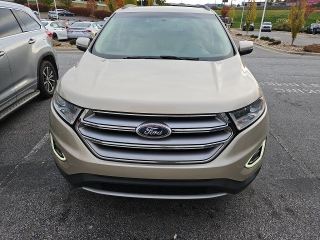 Recent Arrival! 2017 Ford Edge SEL White Gold 4-Wheel Disc Brakes, 6 Speakers, ABS brakes, Air Conditioning, Alloy wheels, AM/FM radio: SiriusXM, AM/FM Stereo w/Single CD, Auto-dimming Rear-View mirror, Automatic temperature control, Axle Ratio: TBD, Black Roof Rack Side Rails, Brake assist, Bumpers: body-color, CD player, Compass, Delay-off headlights, Driver door bin, Driver vanity mirror, Dual front impact airbags, Dual front side impact airbags, Electronic Stability Control, Emergency communication system: SYNC 3 911 Assist, Equipment Group 200A, Exterior Parking Camera Rear, Four wheel independent suspension, Front anti-roll bar, Front Bucket Seats, Front Center Armrest w/Storage, Front dual zone A/C, Front reading lights, Fully automatic headlights, Heated door mirrors, Illuminated entry, Knee airbag, Leather Shift Knob, Low tire pressure warning, Occupant sensing airbag, Outside temperature display, Overhead airbag, Overhead console, Panic alarm, Passenger door bin, Passenger vanity mirror, Power door mirrors, Power driver seat, Power passenger seat, Power steering, Power windows, Rear anti-roll bar, Rear Parking Sensors, Rear reading lights, Rear seat center armrest, Rear window defroster, Rear window wiper, Remote keyless entry, SiriusXM Radio, Speed control, Speed-Sensitive Wipers, Split folding rear seat, Spoiler, Steering wheel mounted audio controls, SYNC, Tachometer, Telescoping steering wheel, Tilt steering wheel, Traction control, Trip computer, Turn signal indicator mirrors, Unique Cloth Bucket Seats, Variably intermittent wipers, Wheels: 18" Sparkle Silver-Painted Aluminum.