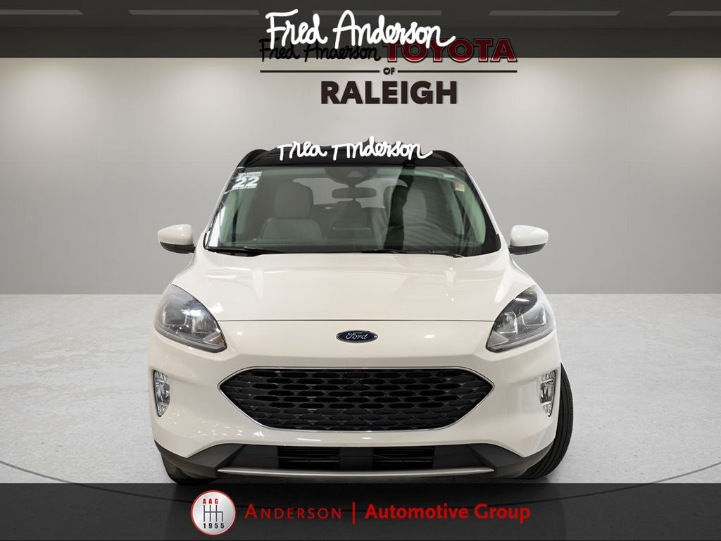 Priced below KBB Fair Purchase Price! Still Under Factory Powertrain Warranty!!, Still Under Factory Warranty!!, Only One Owner and Accident Free Carfax!!, Navigation, Alloy wheels / Premium Wheels, Bluetooth, Hands-Free, Leather Seats, Local Trade, Star Safety System with Active Breaking Technologies, Keyless Entry, Keyless Start, Backup Camera, Sunroof / Panoramic Roof, We will buy your car and pay top dollar for it, even if you don't buy ours!!, USB Port, Navigation System. Check out all these great options Equipment Group 301A, Ford Co-Pilot360 Assist+ (Intelligent Adaptive Cruise Control w/Stop-and-Go, Speed Sign Recognition, and Voice-Activated Touchscreen Navigation System), Navigation System, 18" Machined-Face Aluminum Wheels, 3.81 Axle Ratio, 4-Wheel Disc Brakes, 4G LTE Wi-Fi Hotspot Removal, 6 Speakers, ABS brakes, Air Conditioning, Alloy wheels, AM/FM radio: SiriusXM, AM/FM Stereo, Auto High-beam Headlights, Automatic temperature control, Black Roof-Rack Side Rails, Brake assist, Bumpers: body-color, Compass, Delay-off headlights, Driver door bin, Driver vanity mirror, Dual front impact airbags, Dual front side impact airbags, Electronic Stability Control, Emergency communication system: SYNC 3 911 Assist, Exterior Parking Camera Rear, FordPass Connect, Four wheel independent suspension, Front anti-roll bar, Front Bucket Seats, Front Center Armrest, Front dual zone A/C, Front fog lights, Front reading lights, Fully automatic headlights, Heated ActiveX Trimmed Front Sport Contour Bucket Seats, Heated door mirrors, Heated front seats, Heated steering wheel, Illuminated entry, Instrument Panel w/6.5" Digital Screen, Knee airbag, Low tire pressure warning, Occupant sensing airbag, Outside temperature display, Overhead airbag, Overhead console, Panic alarm, Panoramic Vista Roof, Passenger door bin, Passenger vanity mirror, Power door mirrors, Power driver seat, Power Liftgate, Power steering, Power windows, Radio data system, Rear anti-roll bar, Rear reading lights, Rear seat center armrest, Rear window defroster, Rear window wiper, Remote keyless entry, Speed control, Speed-sensing steering, Speed-Sensitive Wipers, Split folding rear seat, Spoiler, Steering wheel mounted audio controls, SYNC 3 Communications & Entertainment System, Tachometer, Telescoping steering wheel, Tilt steering wheel, Traction control, Trip computer, and Variably intermittent wipersStop by and test drive today. Let us show you how affordable we can make it. Remember, we always give you more for your trade and we will buy your vehicle even if you don't buy one from us. See online @ www.FredAndersonToyota.com or see in person @ Fred Anderson Toyota 9101 Glenwood Ave. Raleigh NC, 27617. 2022 Ford Escape SEL FWD Star White Metallic Tri-Coat 8-Speed Automatic