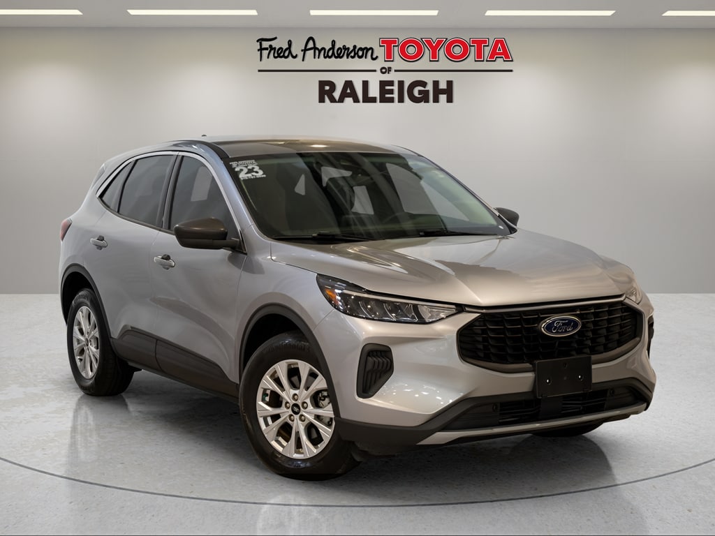 Clean CARFAX. Still Under Factory Powertrain Warranty!!, Still Under Factory Warranty!!, Accident Free Carfax!!, Alloy wheels / Premium Wheels, Bluetooth, Hands-Free, Local Trade, Star Safety System with Active Breaking Technologies, Keyless Entry, Keyless Start, Backup Camera, We will buy your car and pay top dollar for it, even if you don't buy ours!!, USB Port, AWD. Check out all these great options Equipment Group 200A, AWD, 3.81 Axle Ratio, 4-Wheel Disc Brakes, 6 Speakers, ABS brakes, Air Conditioning, Alloy wheels, AM/FM radio: SiriusXM, AM/FM Stereo, Auto High-beam Headlights, Automatic temperature control, Brake assist, Bumpers: body-color, Compass, Delay-off headlights, Driver door bin, Driver vanity mirror, Dual front impact airbags, Dual front side impact airbags, Electronic Stability Control, Emergency communication system: SYNC 4 911 Assist, Exterior Parking Camera Rear, FordPass Connect, Four wheel independent suspension, Front anti-roll bar, Front Bucket Seats, Front Center Armrest, Front dual zone A/C, Front License Plate Bracket, Front reading lights, Fully automatic headlights, Heated door mirrors, Heated front seats, Heated steering wheel, Illuminated entry, Knee airbag, Low tire pressure warning, Occupant sensing airbag, Outside temperature display, Overhead airbag, Overhead console, Panic alarm, Passenger door bin, Passenger vanity mirror, Power door mirrors, Power driver seat, Power Liftgate, Power steering, Power windows, Radio data system, Rear anti-roll bar, Rear reading lights, Rear seat center armrest, Rear window defroster, Rear window wiper, Remote keyless entry, Speed control, Speed-sensing steering, Speed-Sensitive Wipers, Split folding rear seat, Spoiler, Steering wheel mounted audio controls, SYNC 4, Tachometer, Telescoping steering wheel, Tilt steering wheel, Traction control, Trip computer, Unique Cloth Front Bucket Seats, Variably intermittent wipers, and Wheels: 17" Shadow Silver-Painted AluminumStop by and test drive today. Let us show you how affordable we can make it. Remember, we always give you more for your trade and we will buy your vehicle even if you don't buy one from us. See online @ www.FredAndersonToyota.com or see in person @ Fred Anderson Toyota 9101 Glenwood Ave. Raleigh NC, 27617. 2023 Ford Escape Active AWD Iconic Silver Metallic 8-Speed Automatic